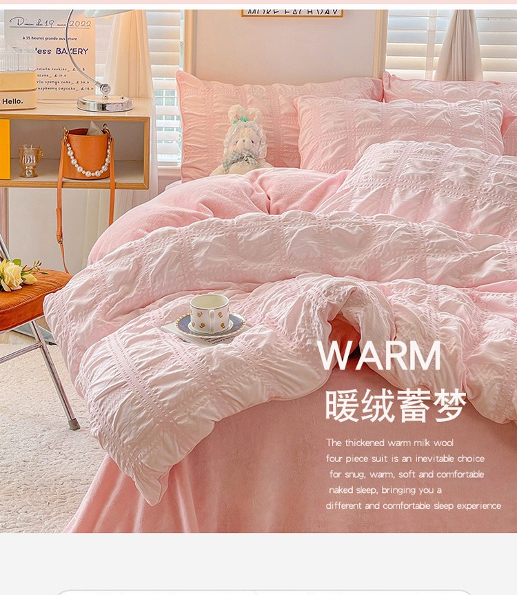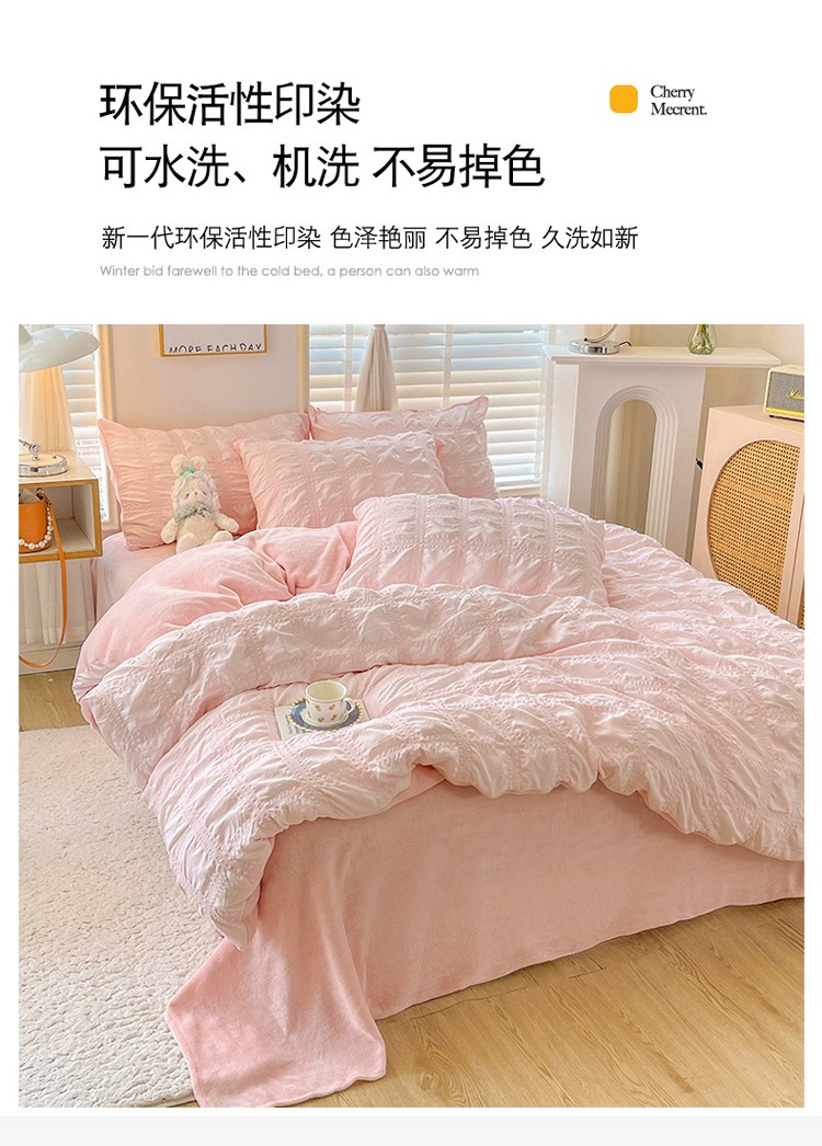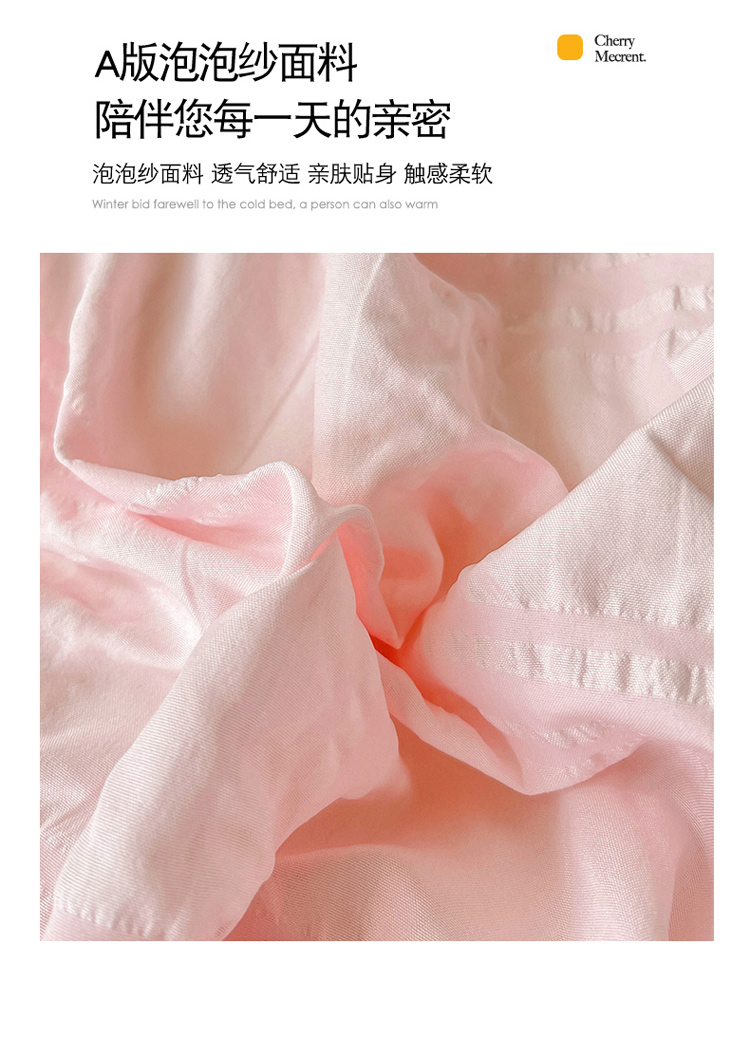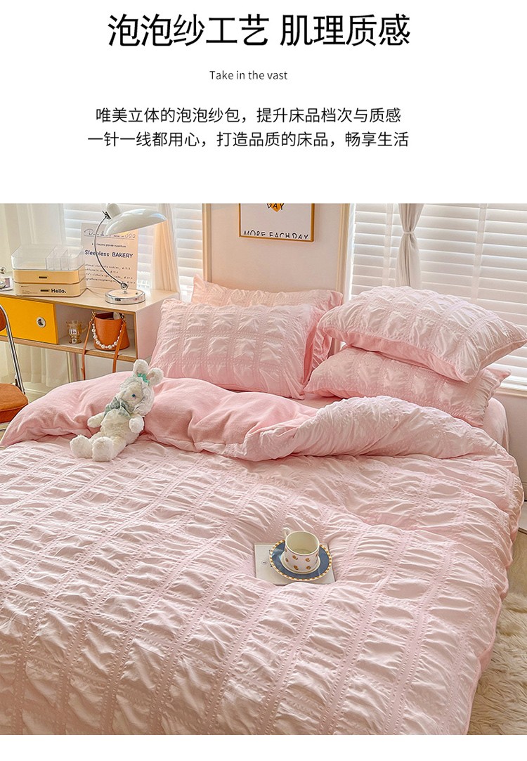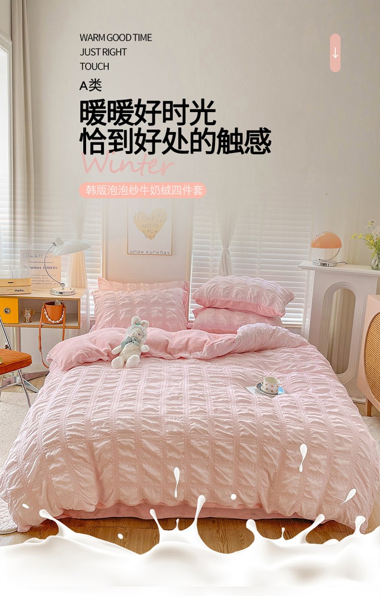 商品名称:寐居 2022新款泡泡纱牛奶绒四件套 泡泡-温馨粉