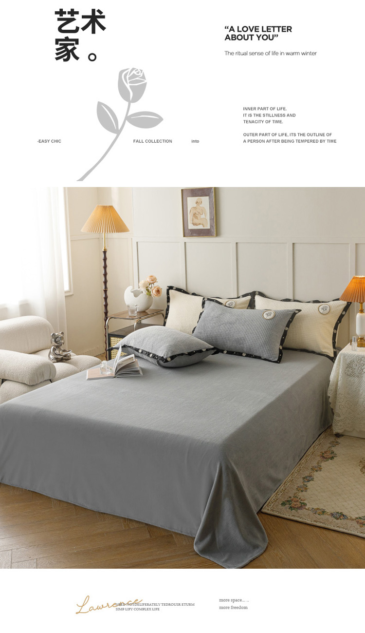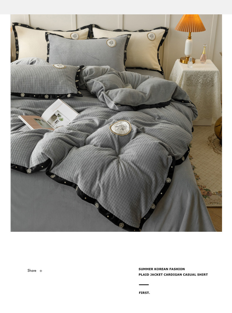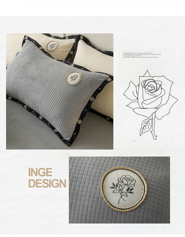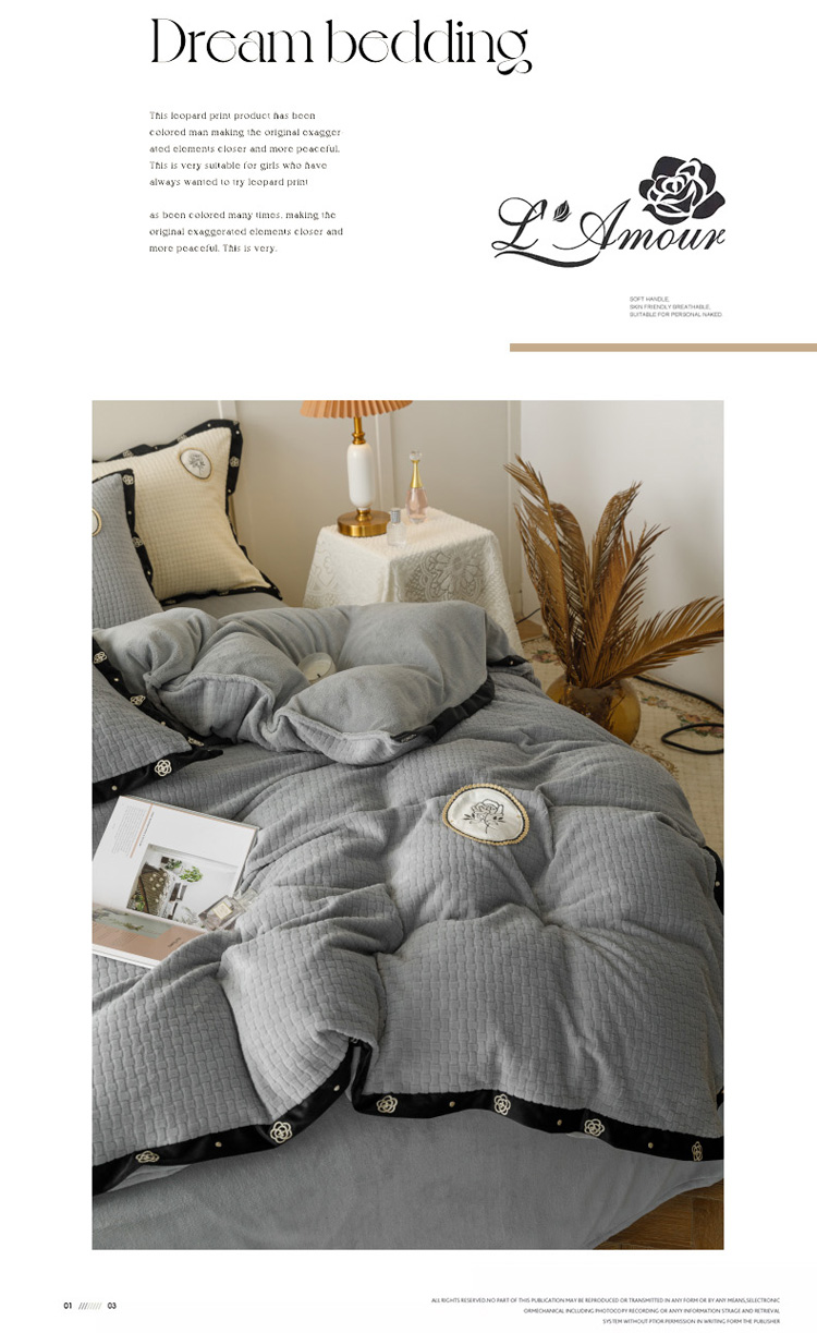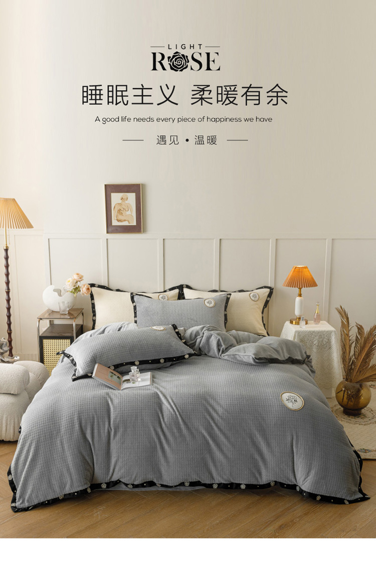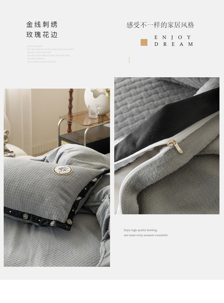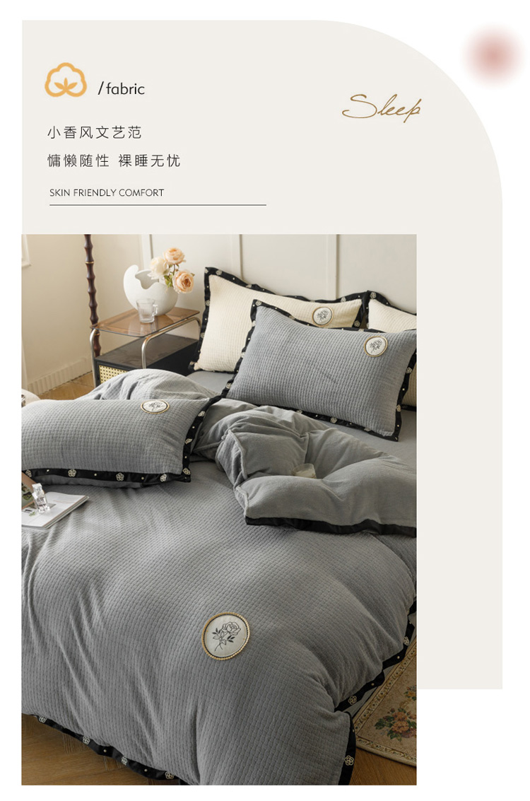 菊上家纺 2022新款高端刺绣牛奶绒四件套小香玫瑰系列 小香灰