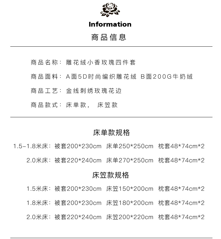 商品名称:菊上家纺 2022新款高端刺绣牛奶绒四件套小香玫瑰系列 小香灰