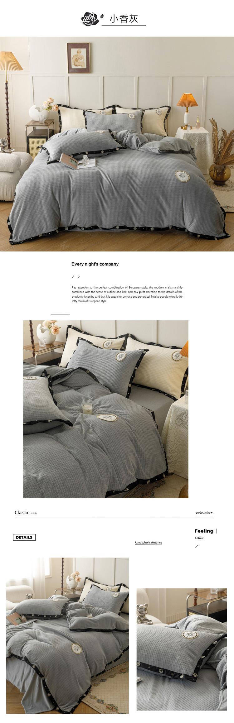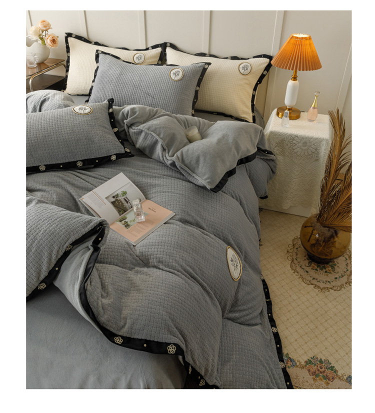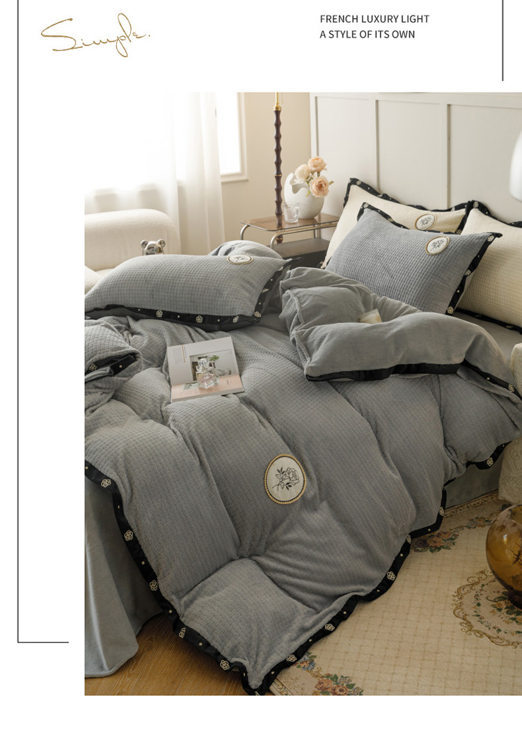 (总)菊上家纺 2025新品雕花牛奶绒绣花床盖款四件套-伊莉莎系列,伊莉莎-芝士白色,伊莉莎-奶奶灰色,伊莉莎-粉色
