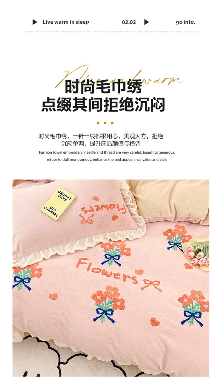 商品名称:川悦生活 2023新款毛巾绣花边款四件套 花边朵朵花园