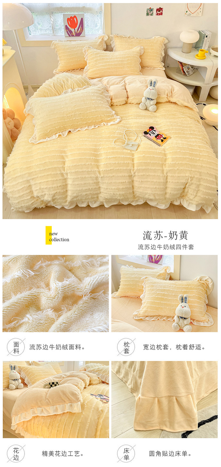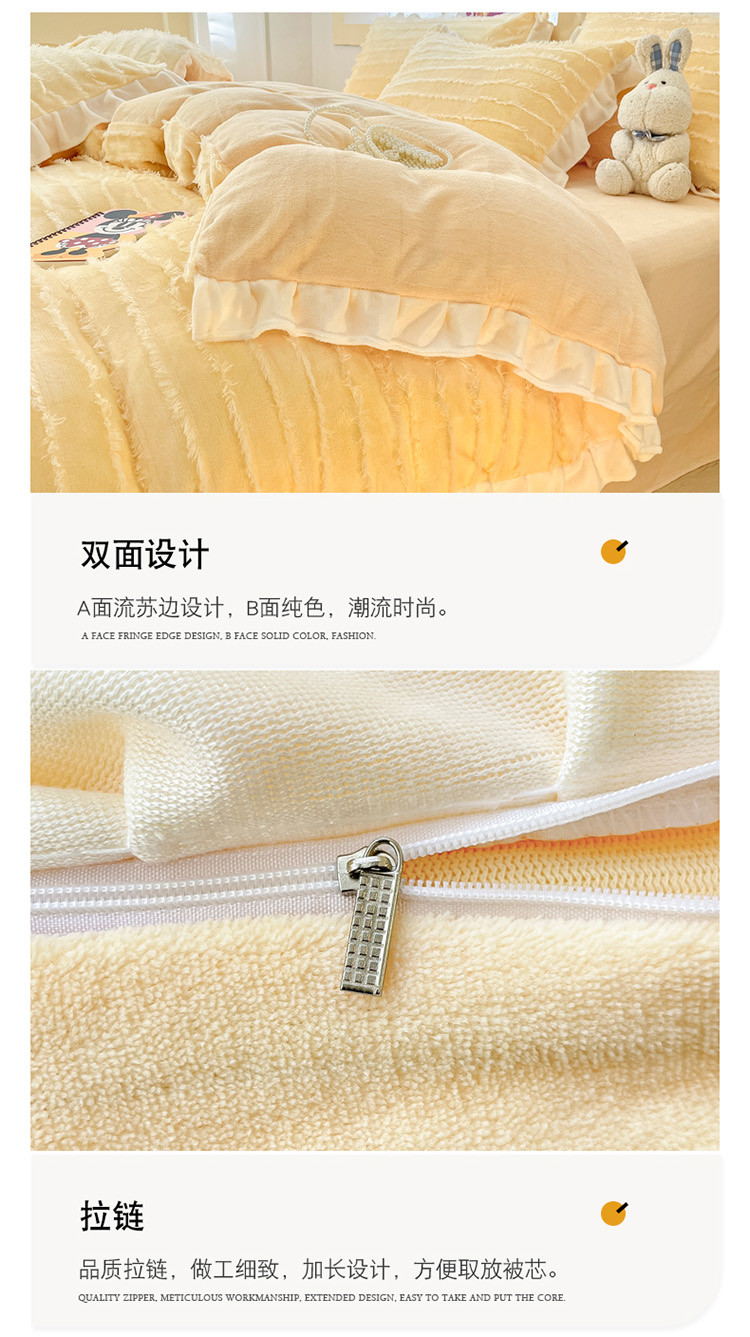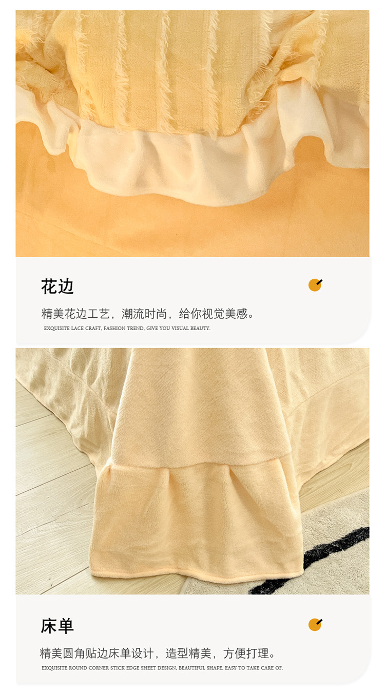 金爱家 2023新款流苏牛奶绒四件套 流苏-奶黄