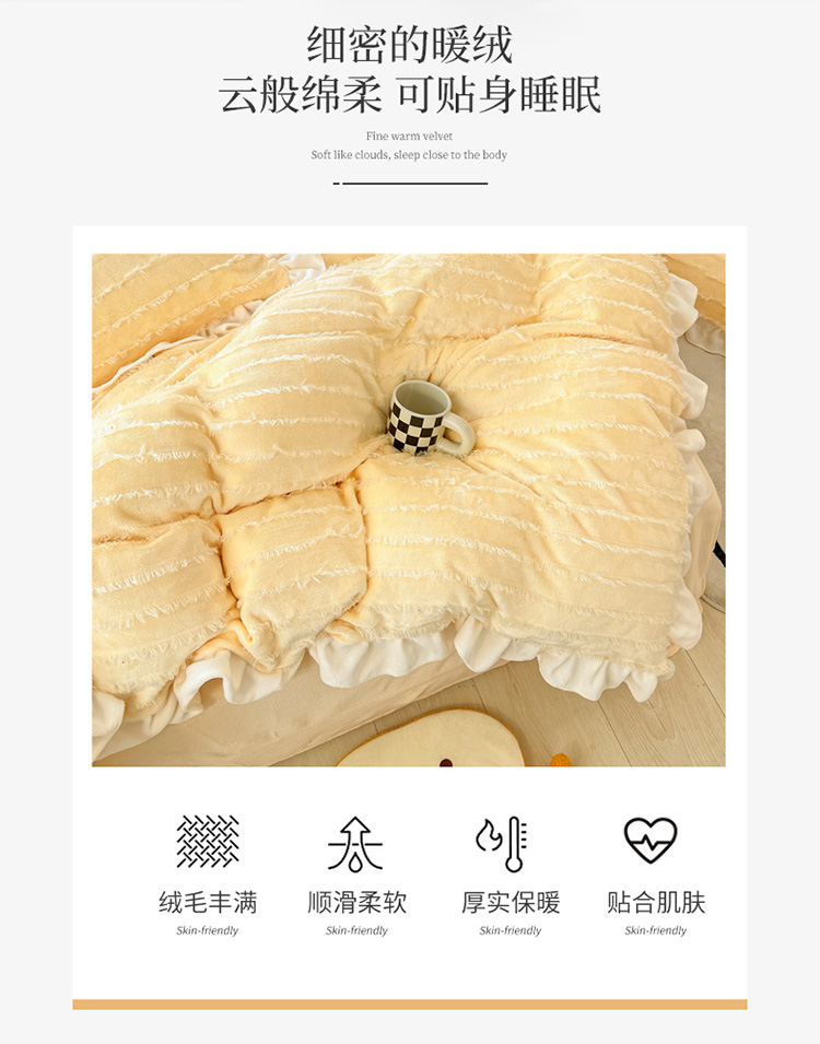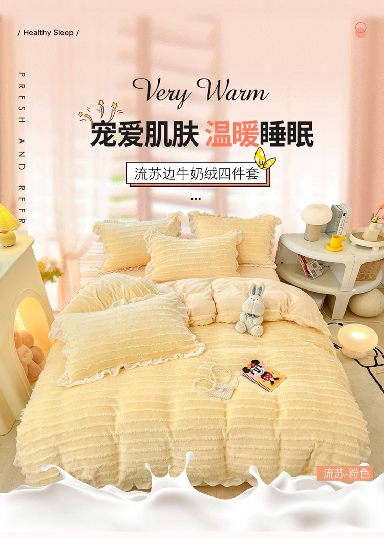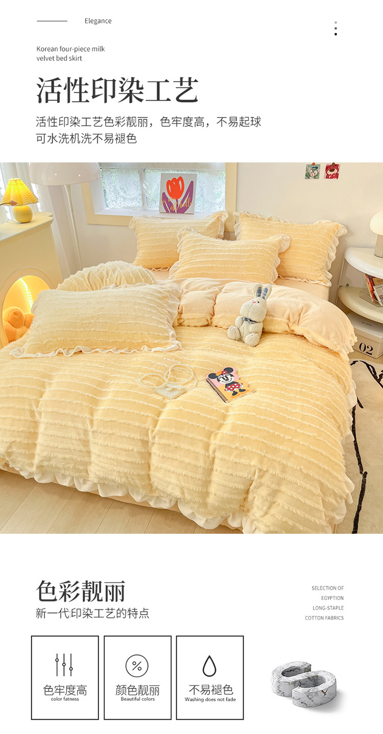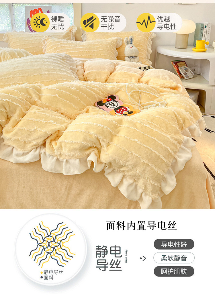 金爱家 2023新款流苏牛奶绒四件套 流苏-奶黄