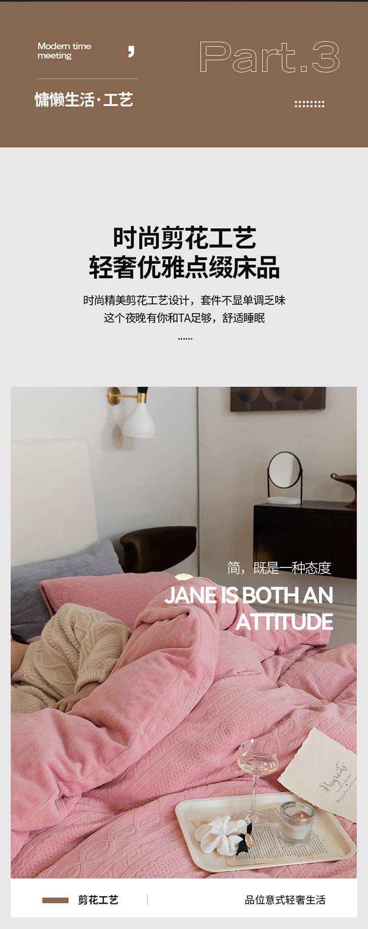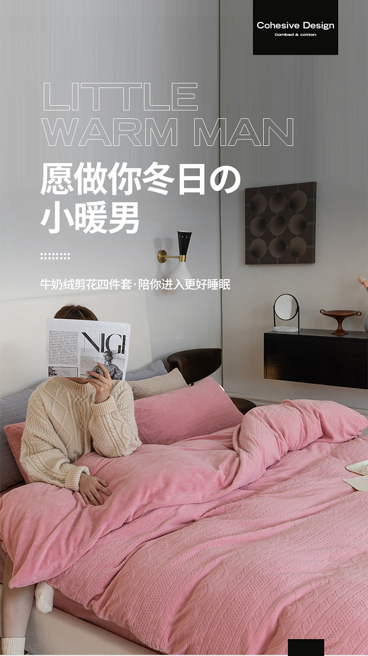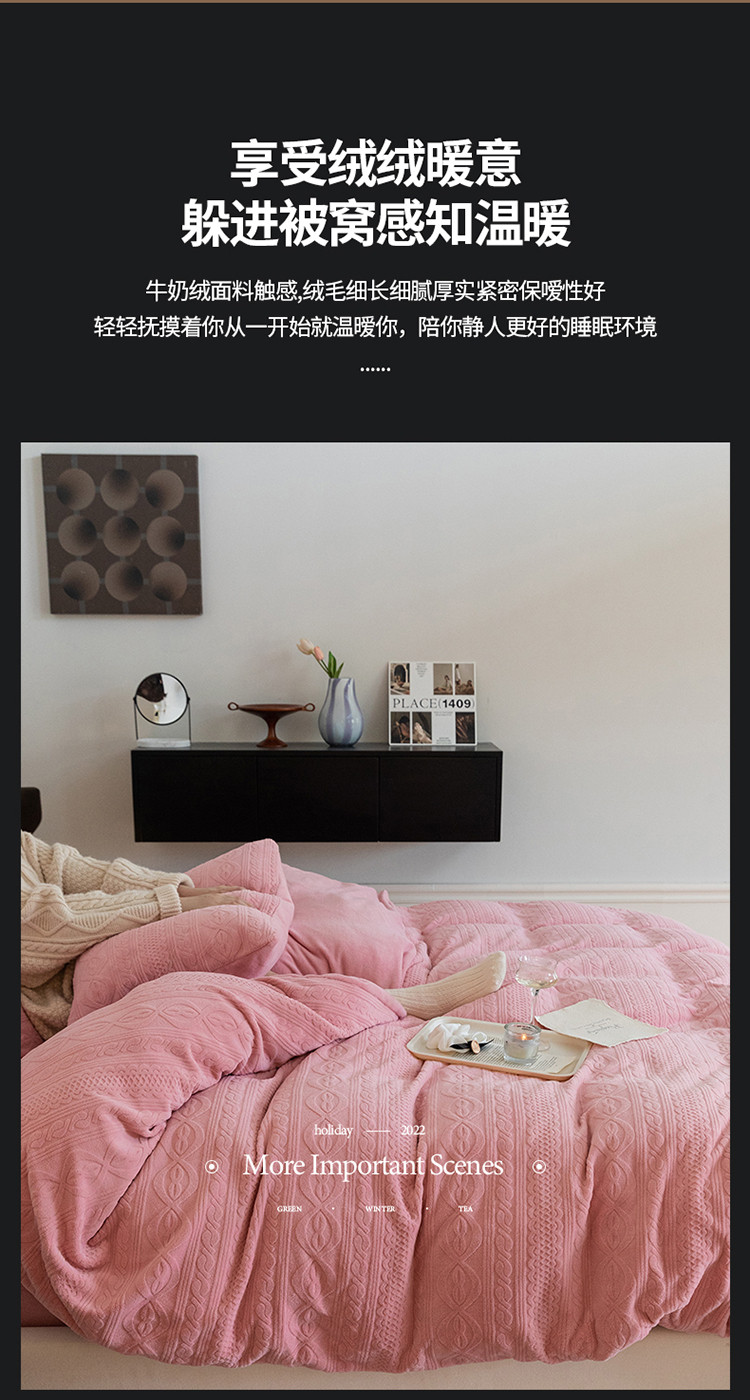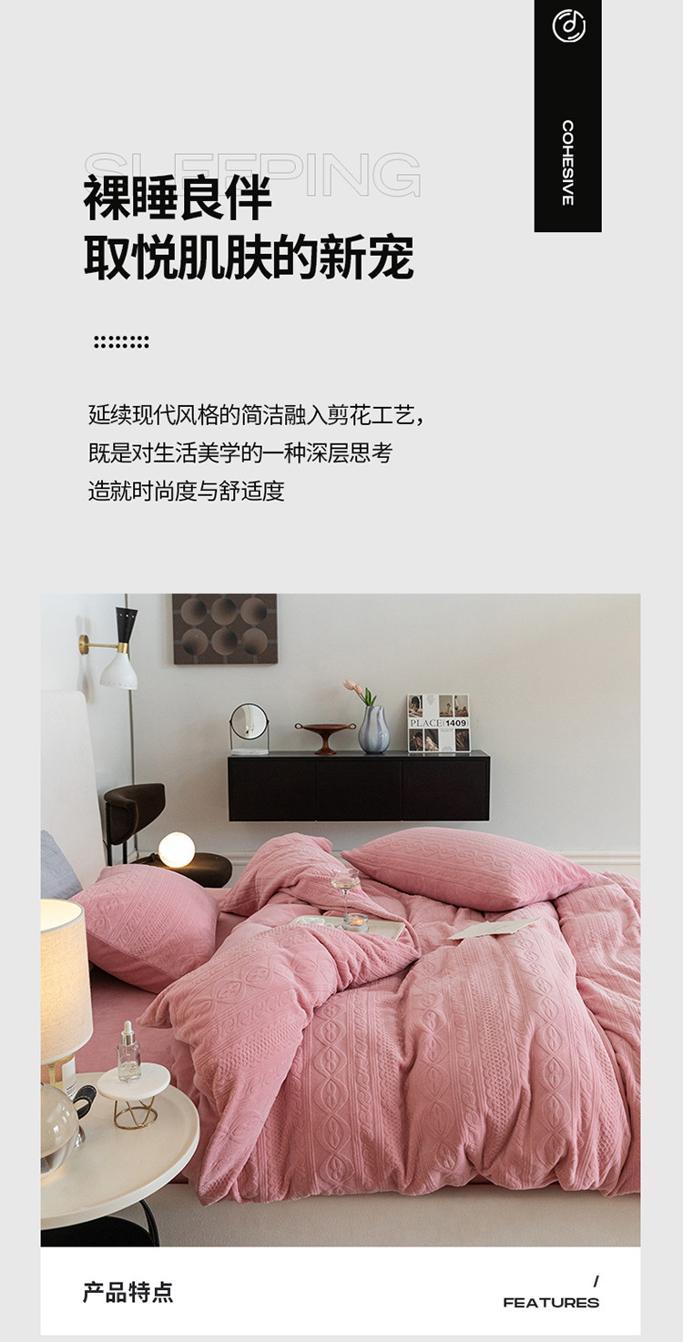 当前位置: 91家纺网 > 商品网购 > 床品套件 > 四件套 > 牛奶绒四件套 > 寐眠 2022新款牛奶绒剪花四件套 蔷薇粉
