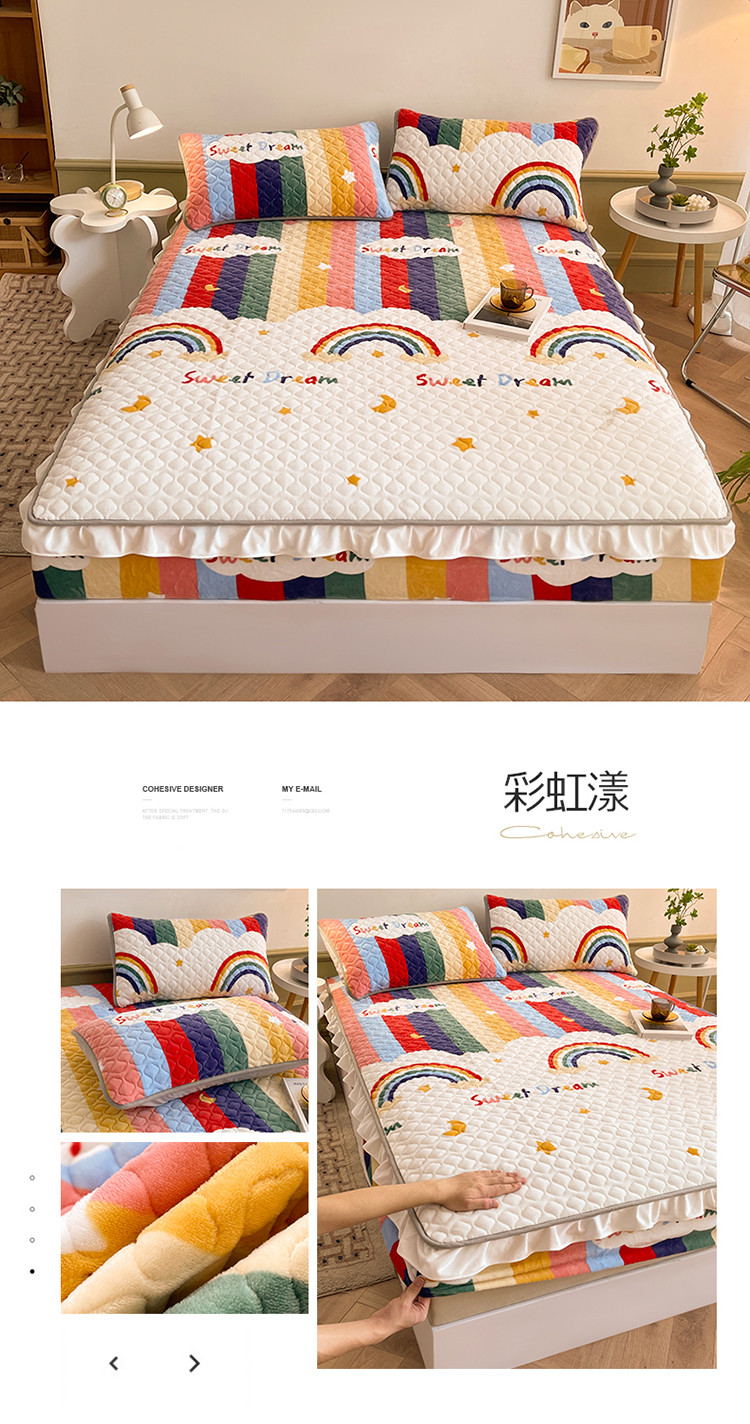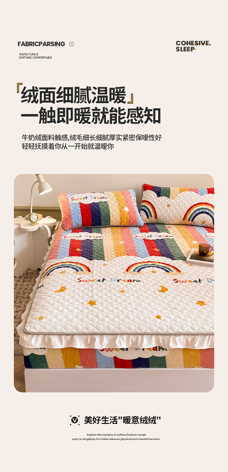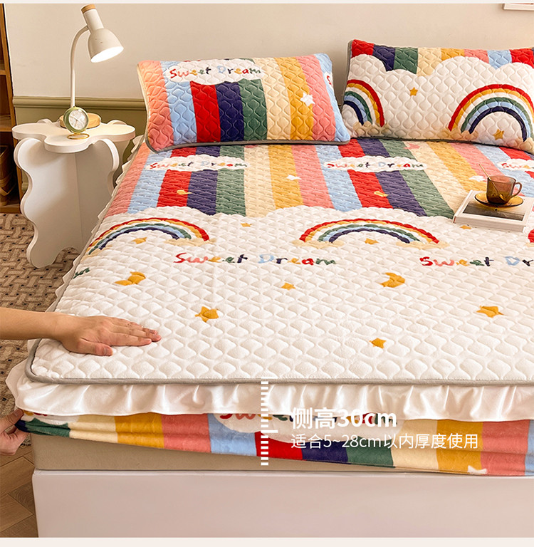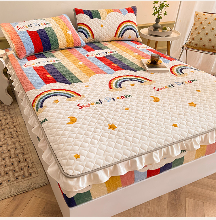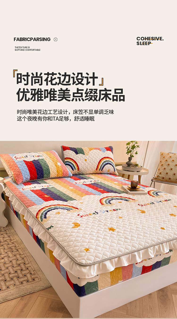 澳梵家居 2022新款牛奶绒花边床笠三件套 彩虹漾