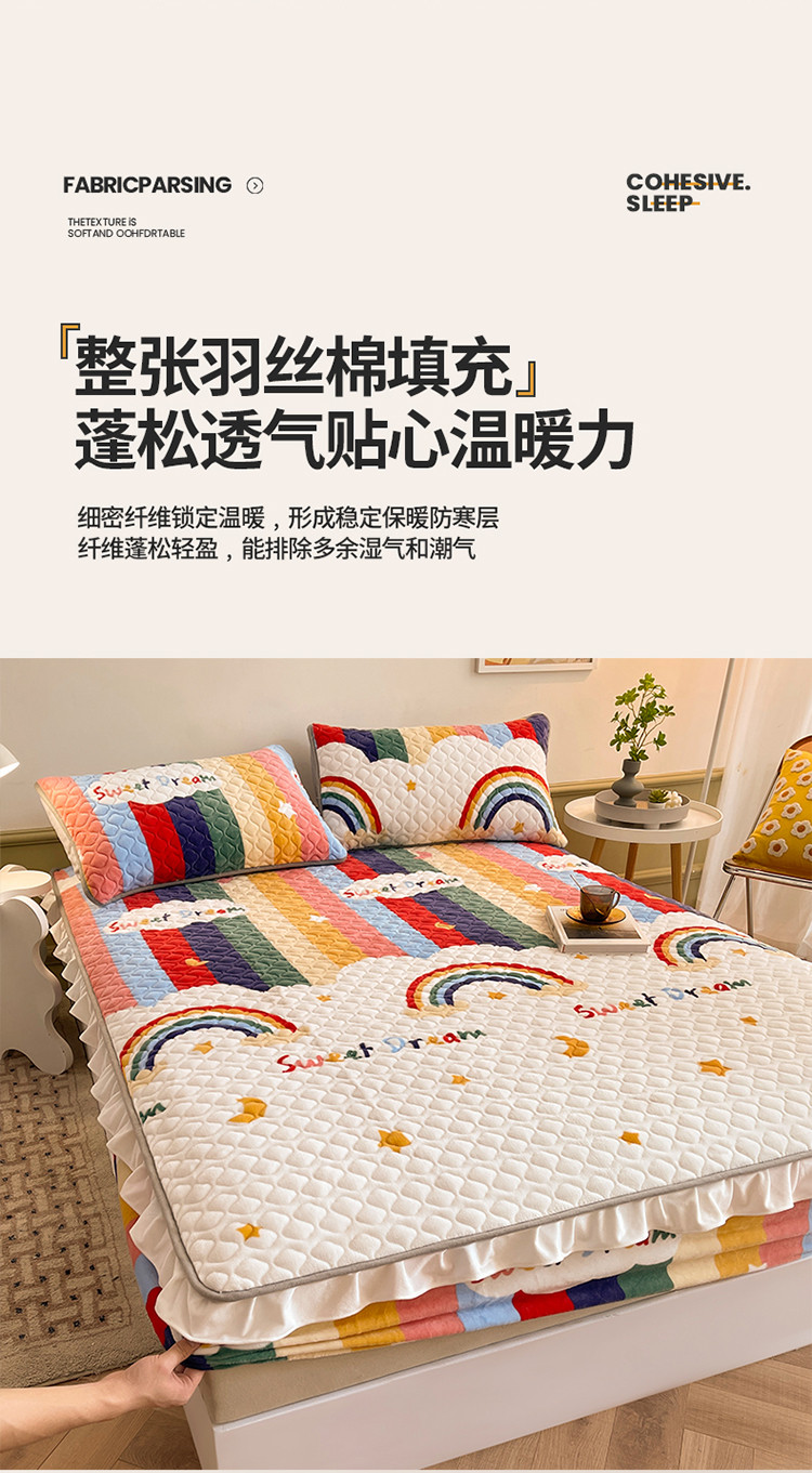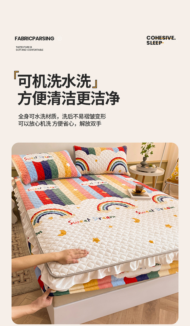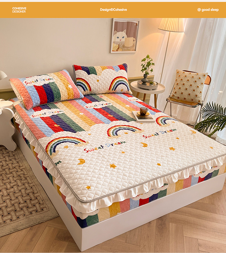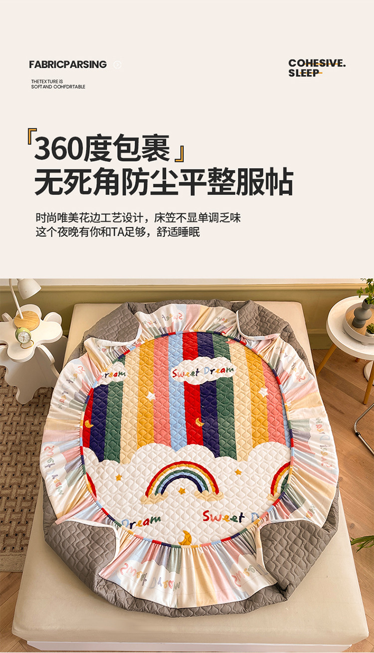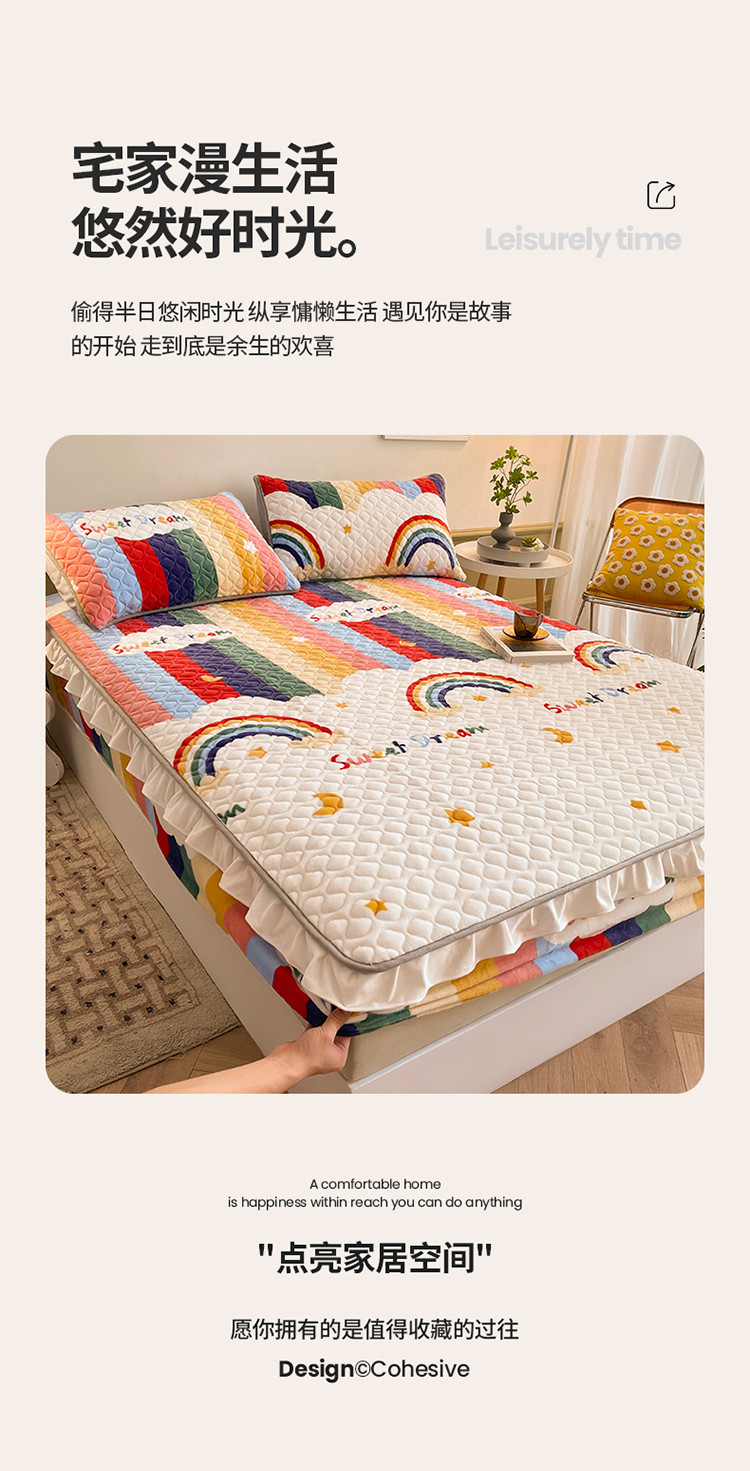 澳梵家居 2022新款牛奶绒花边床笠三件套 彩虹漾