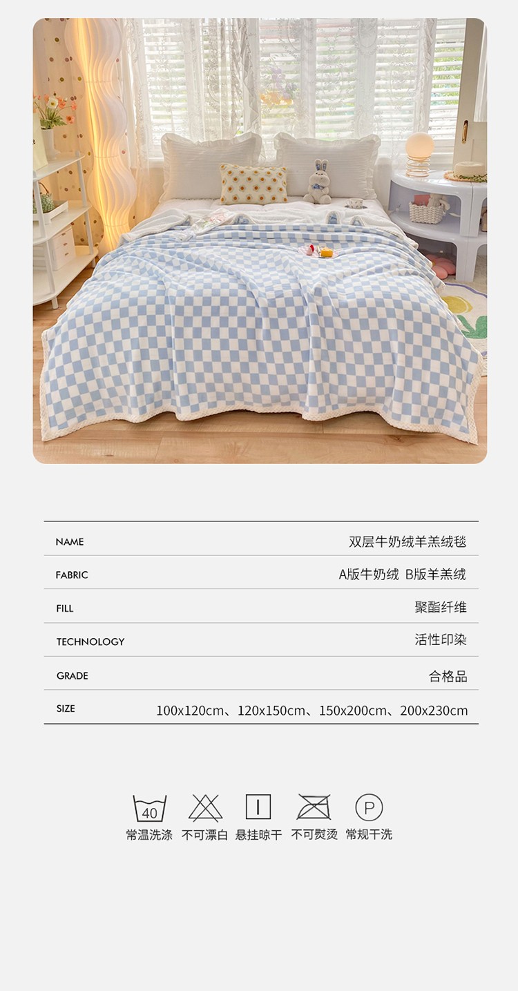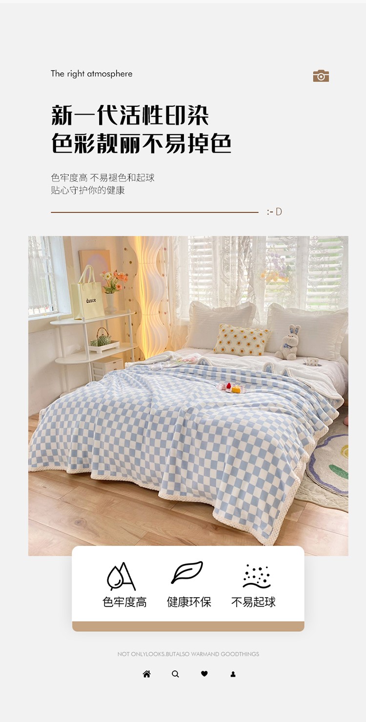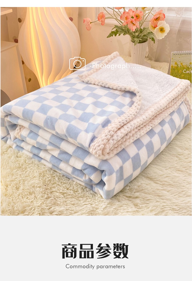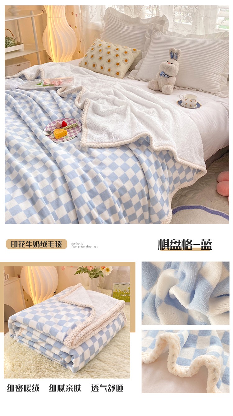 商品名称:绒兔兔 2022新款牛奶绒印花毯子 棋盘格-蓝