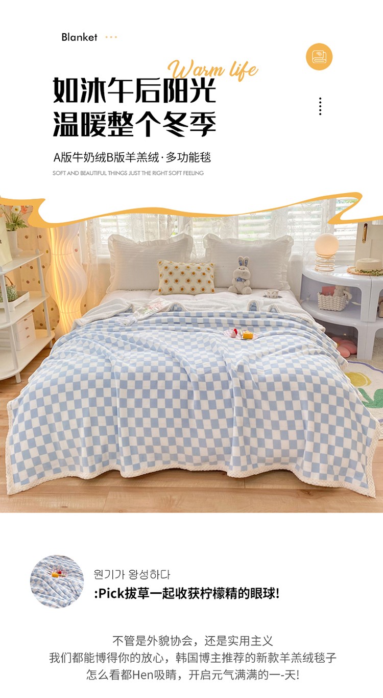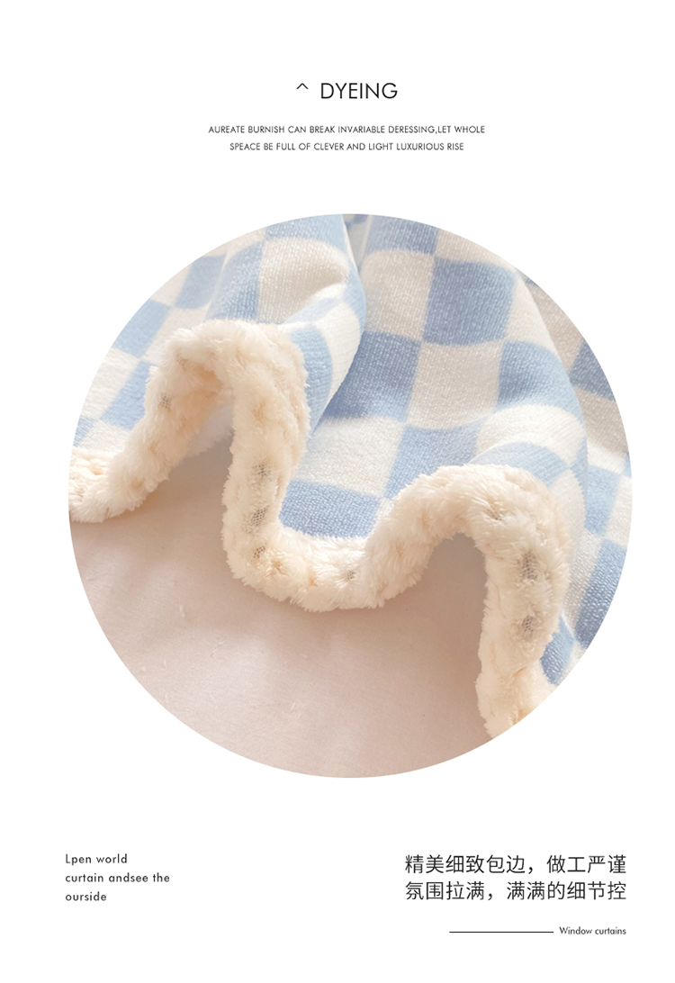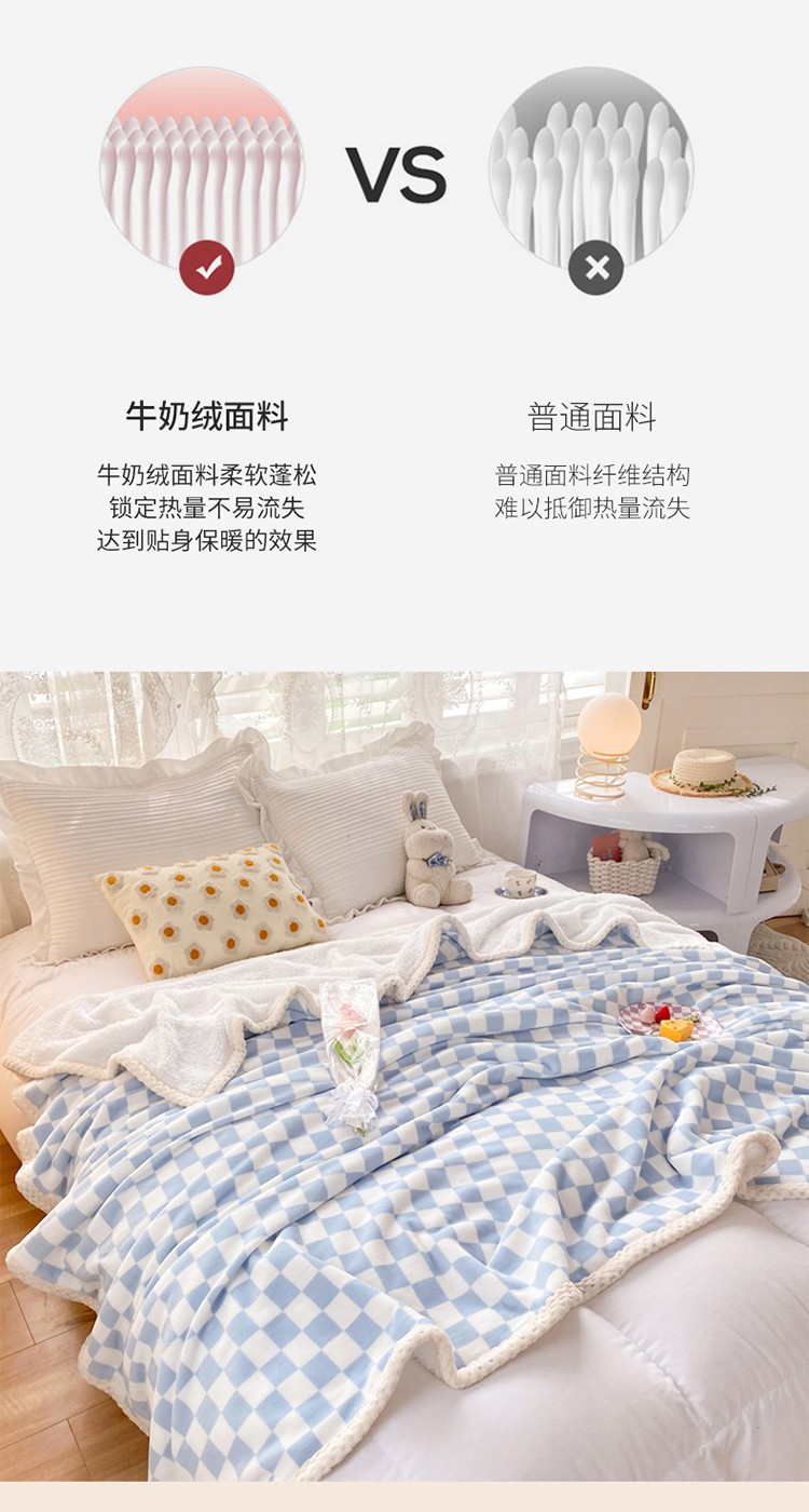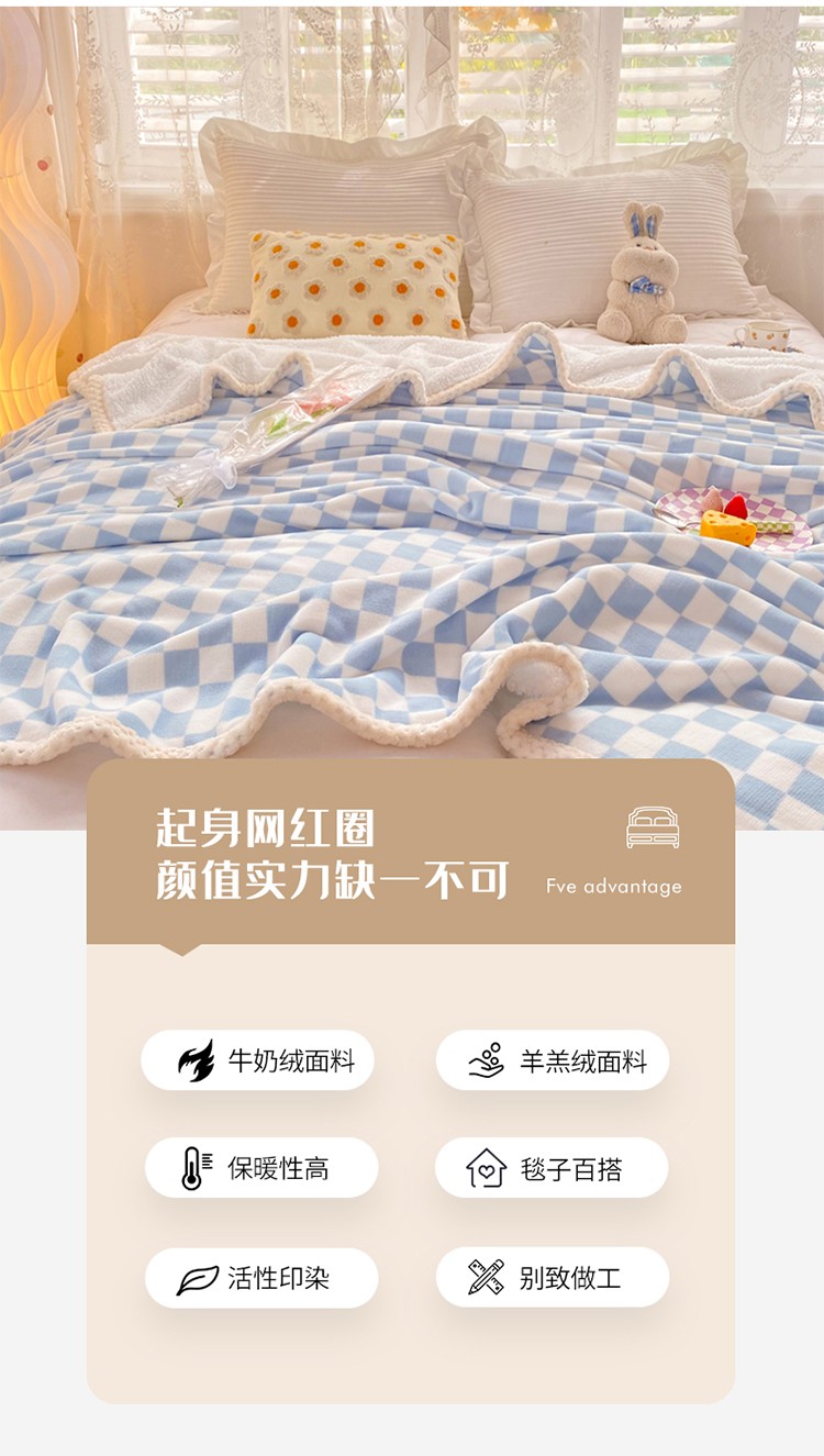 商品名称:绒兔兔 2022新款牛奶绒印花毯子 棋盘格-蓝