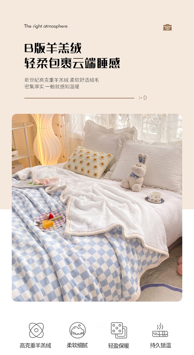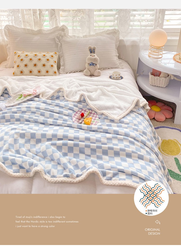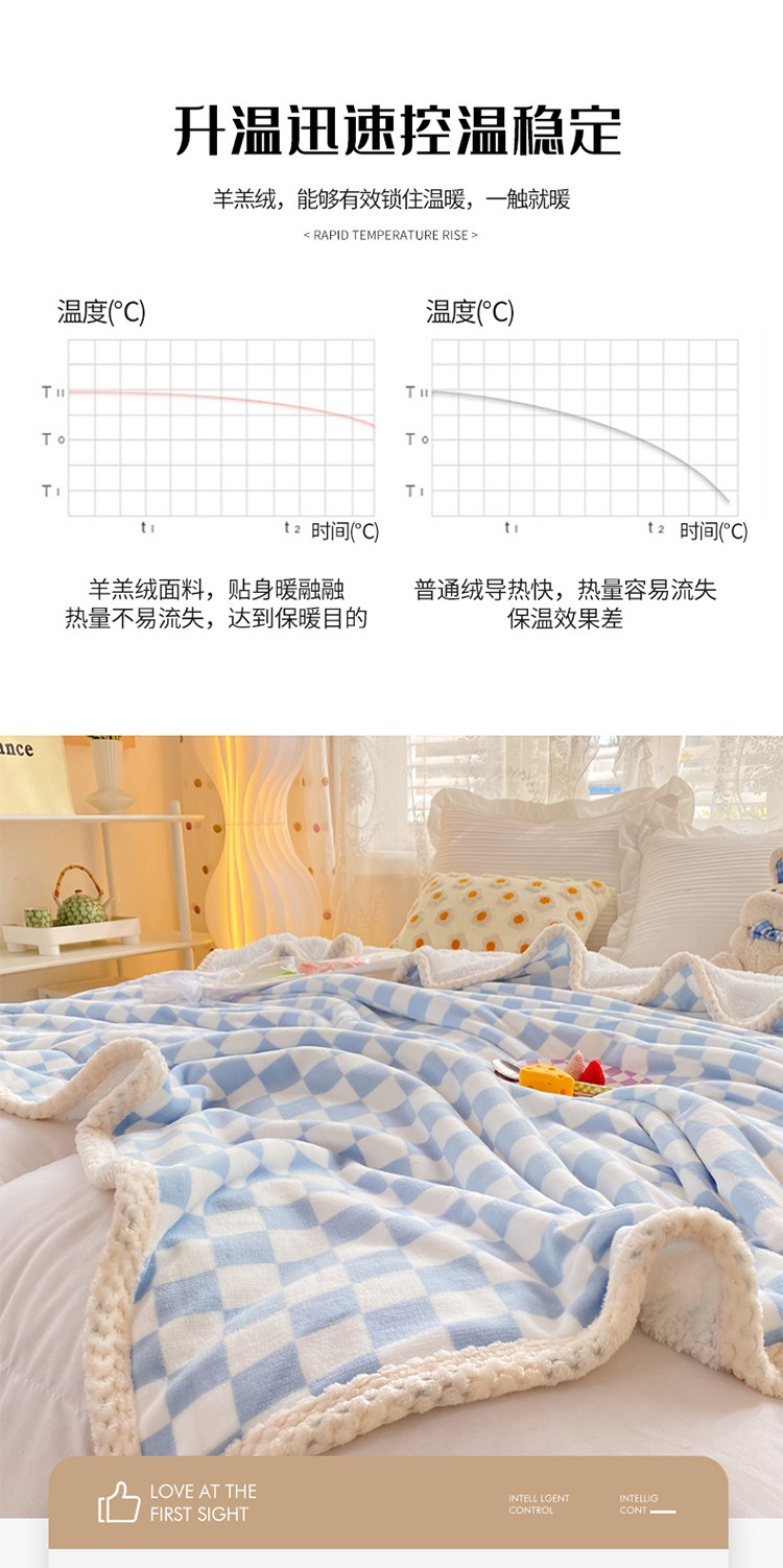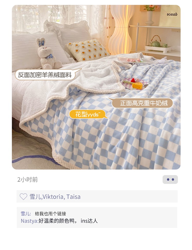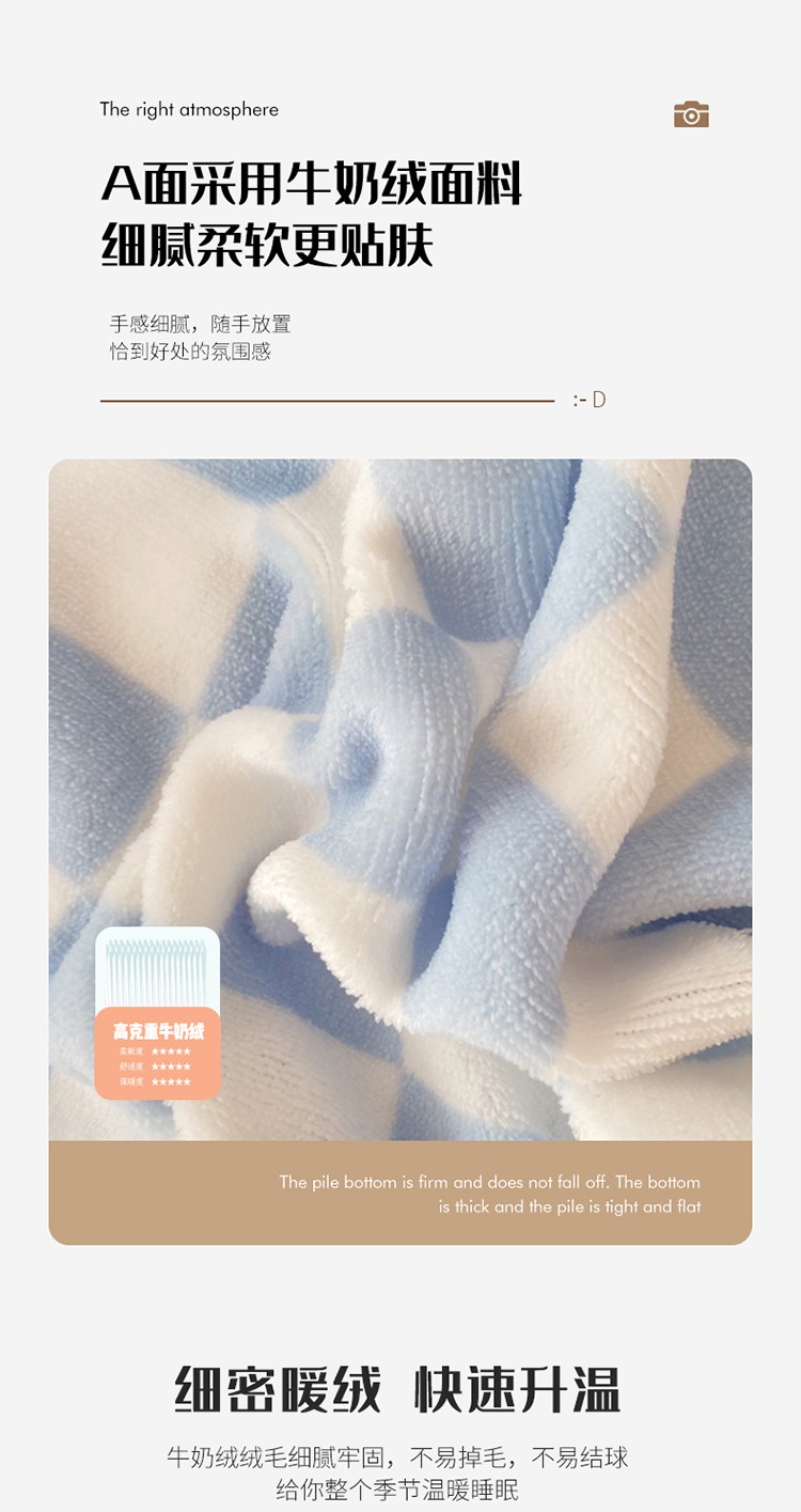 商品名称:绒兔兔 2022新款牛奶绒印花毯子 棋盘格-蓝