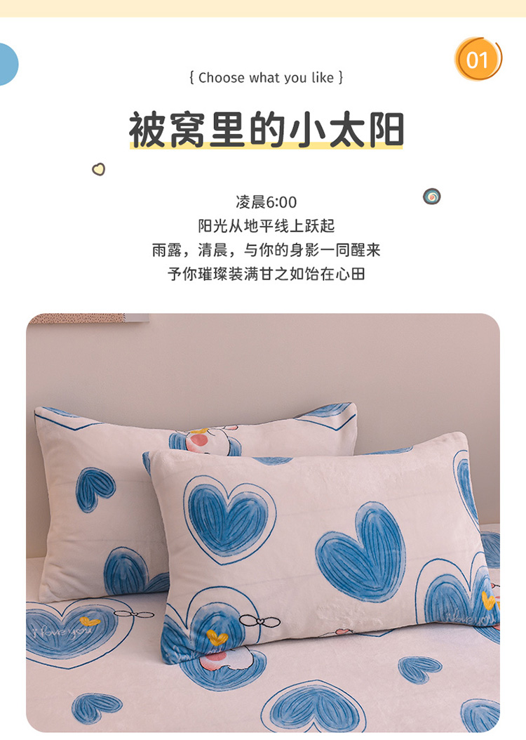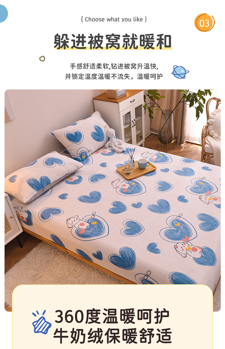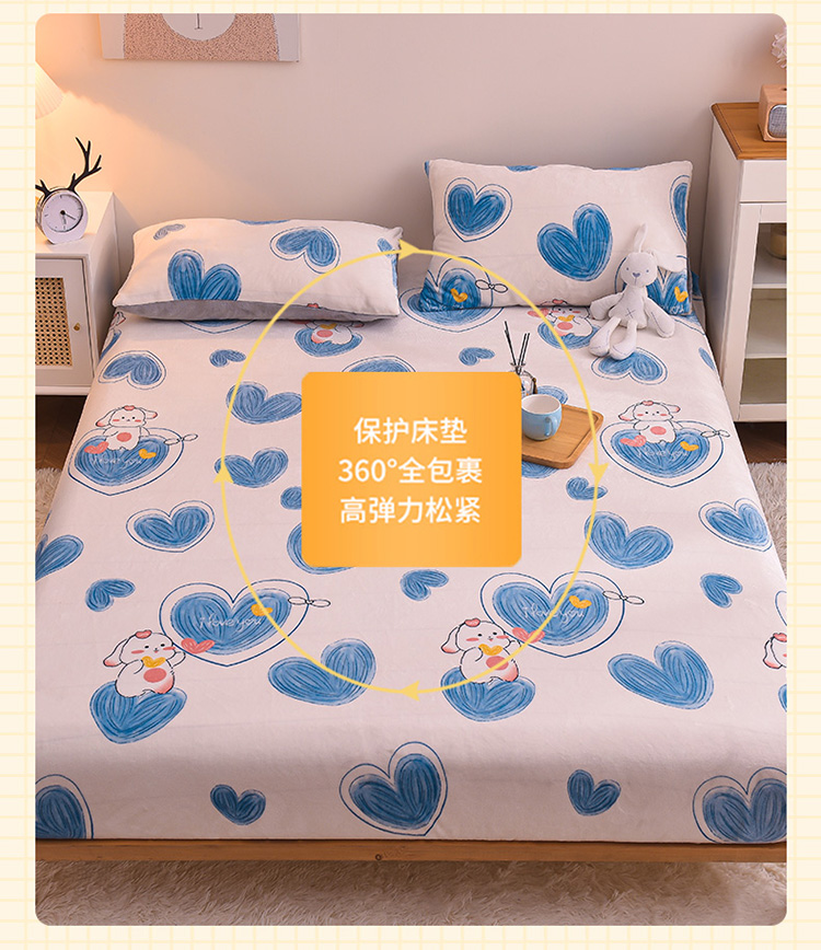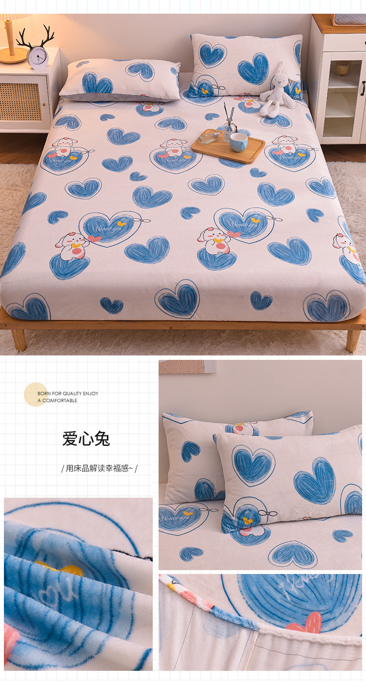 芃成 2022新款加厚双面牛奶绒印花床品系列-单床笠 爱心兔