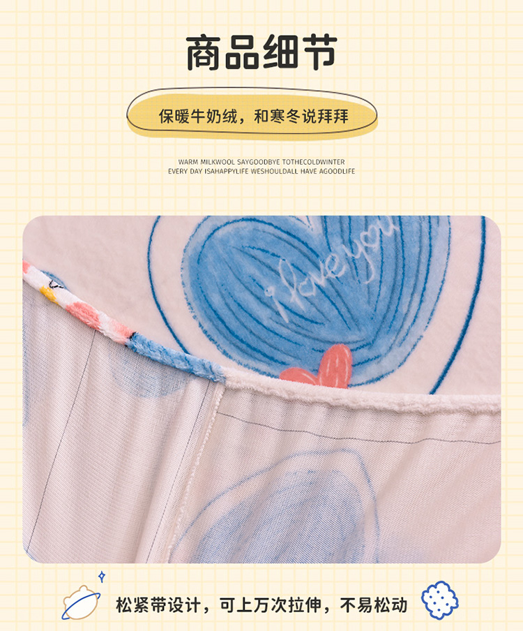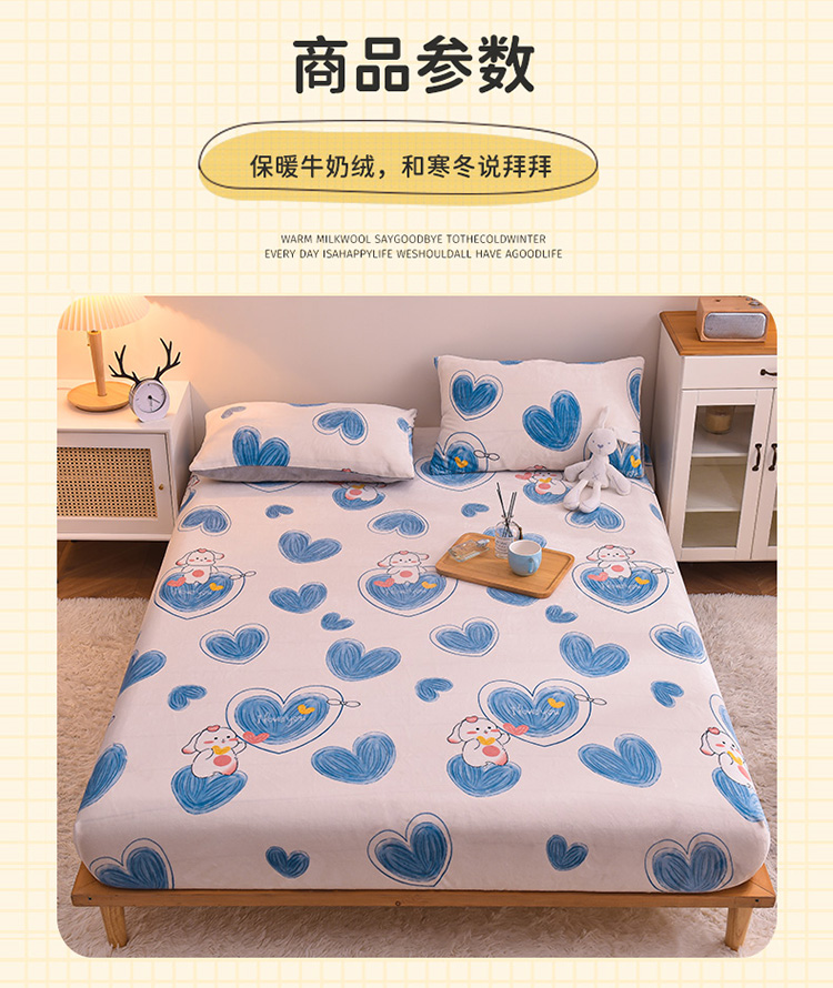 • 91家纺网 家纺一手货源 找家纺 芃成 2022新款加厚双面牛奶绒印花床品系列-单床笠 爱心兔