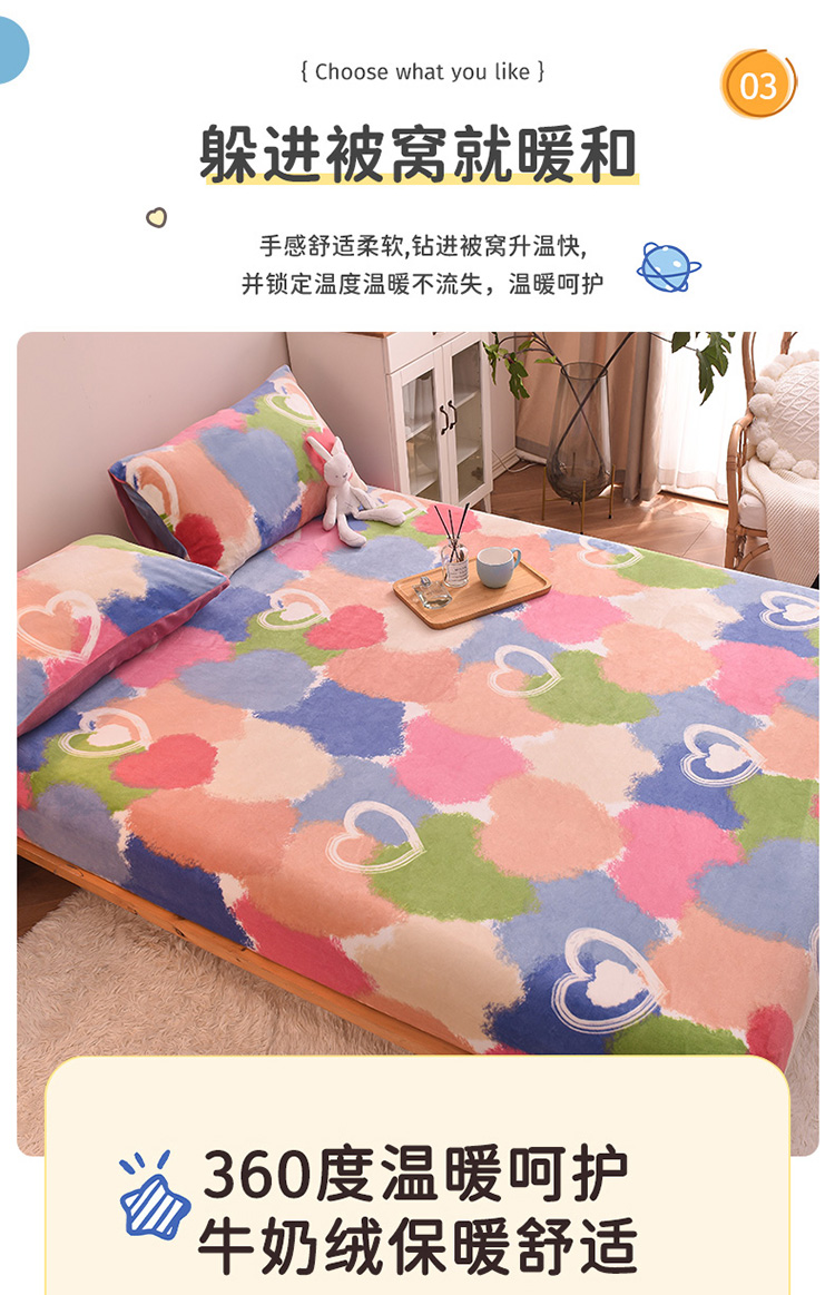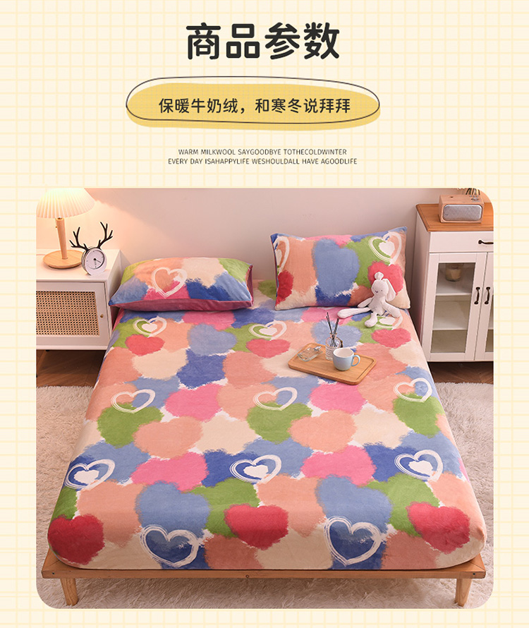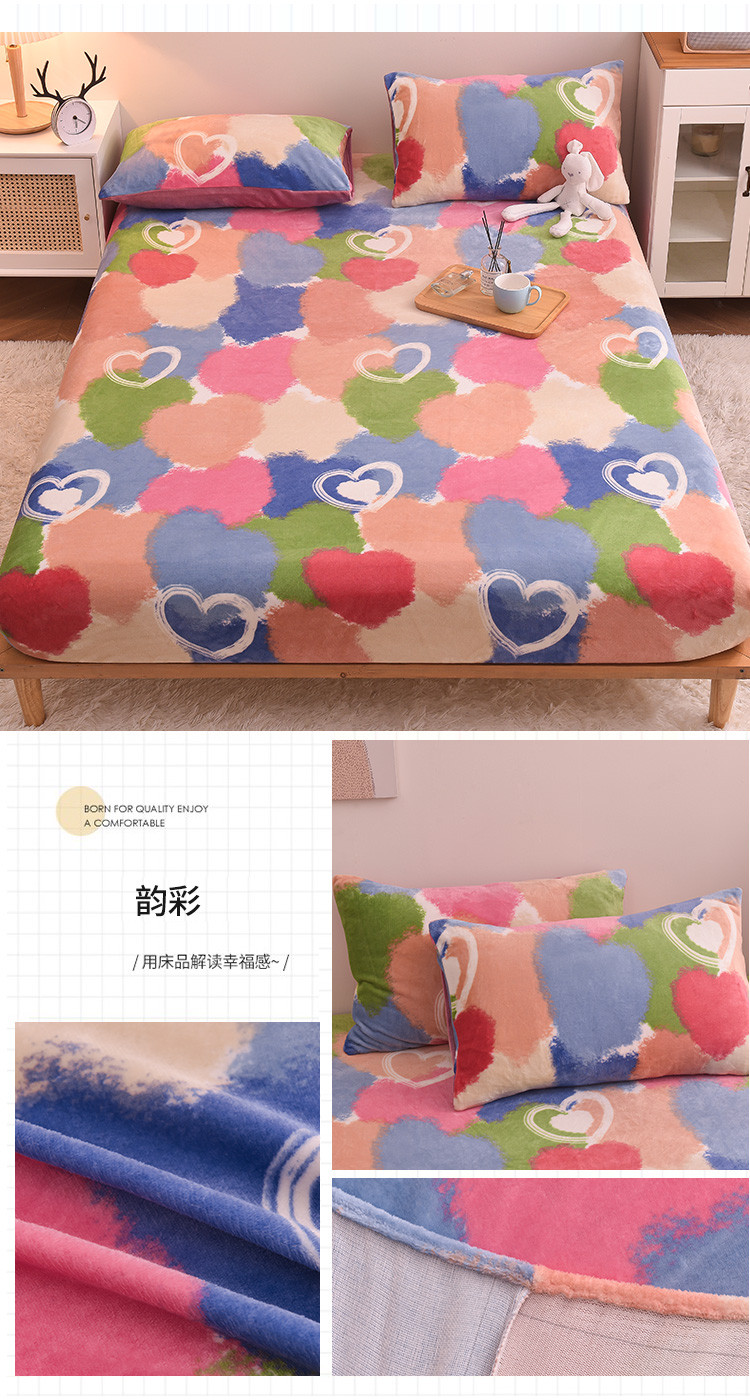 • 91家纺网 家纺一手货源 找家纺 芃成 2022新款加厚双面牛奶绒印花床品系列-单床笠 韵彩