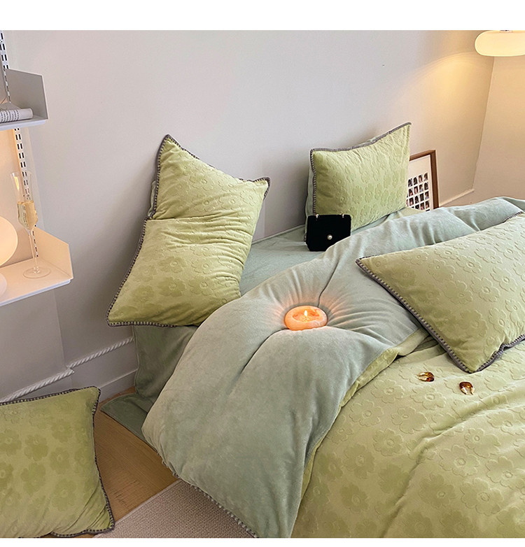 商品名称:眠屿家纺 2022新款三角针兰花牛奶绒四件套 草绿