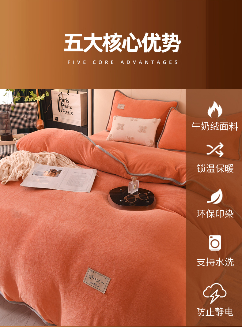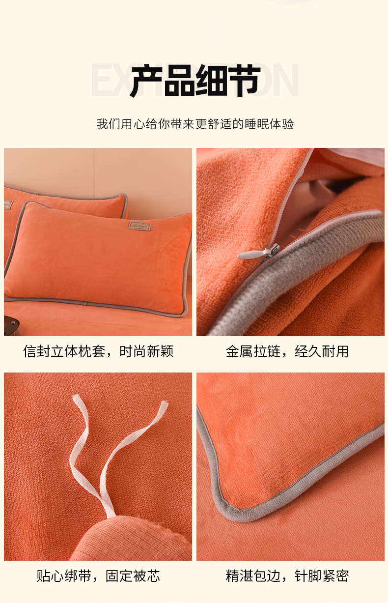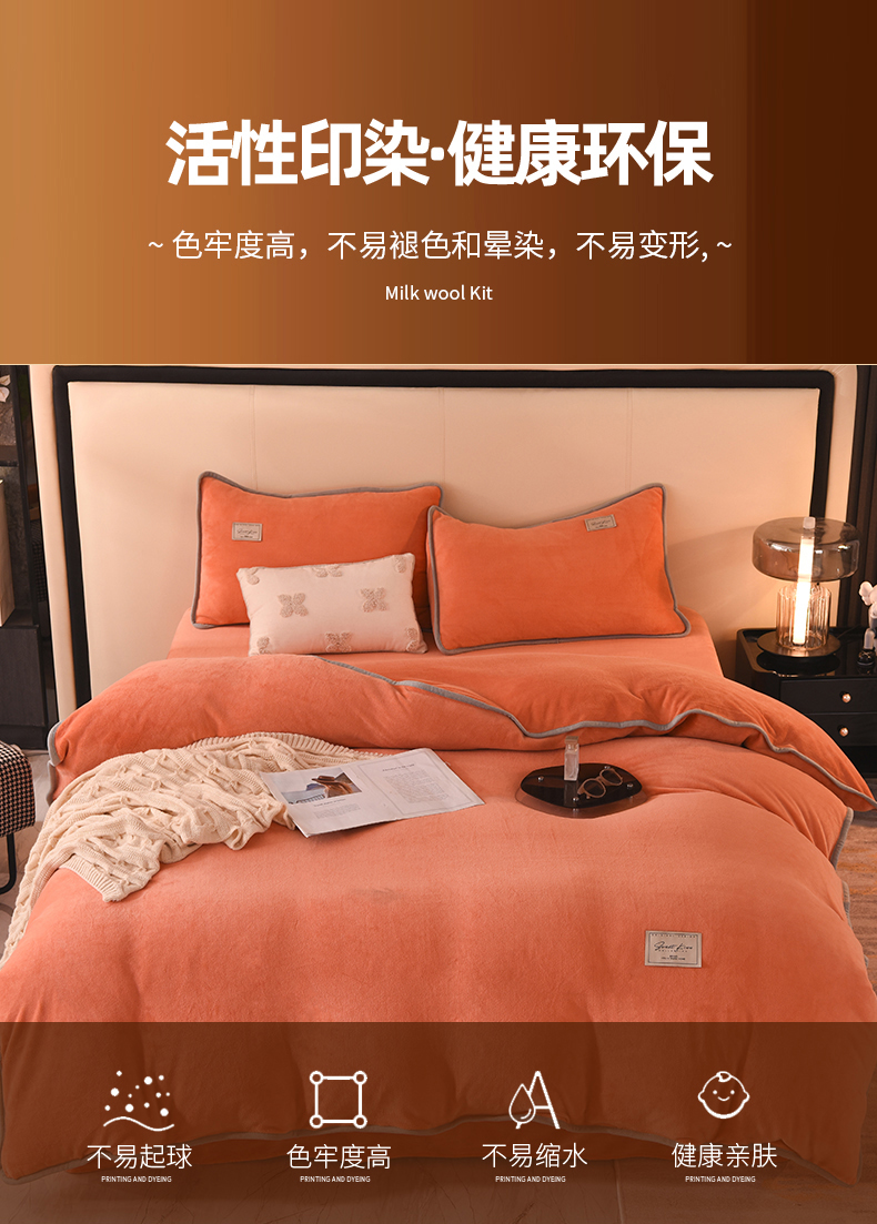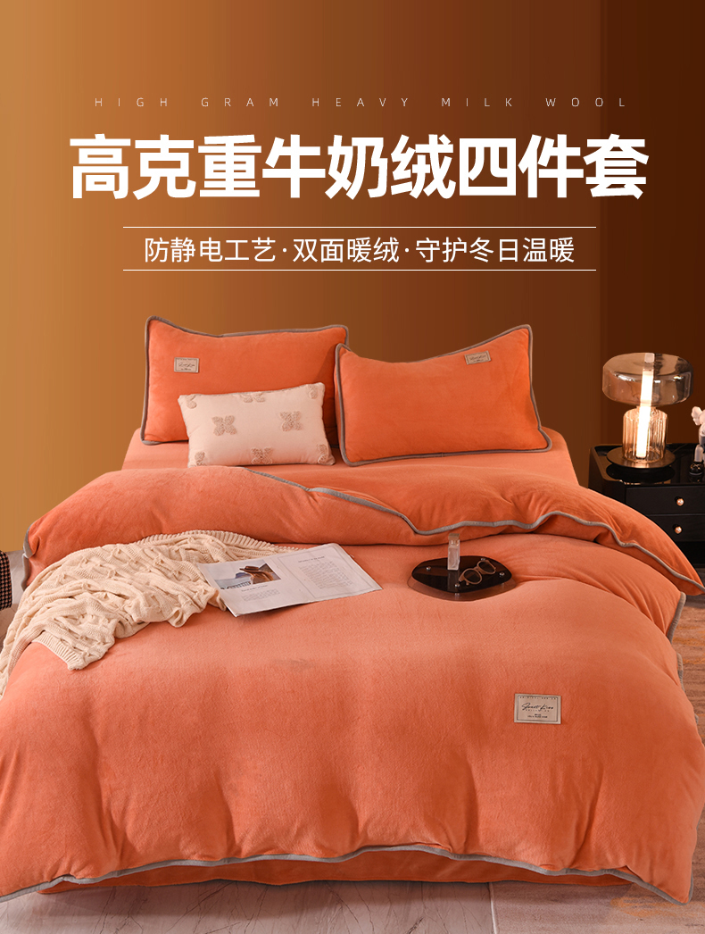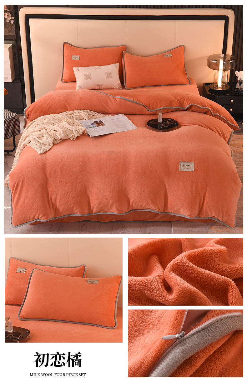 当前位置: 91家纺网 > 商品网购 > 床品套件 > 四件套 > 牛奶绒四件套 > 518家纺 新款220克牛奶绒纯色四件套支持定制 初恋橘