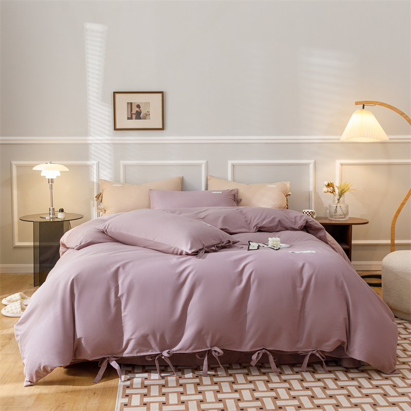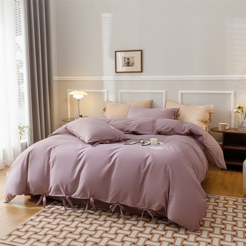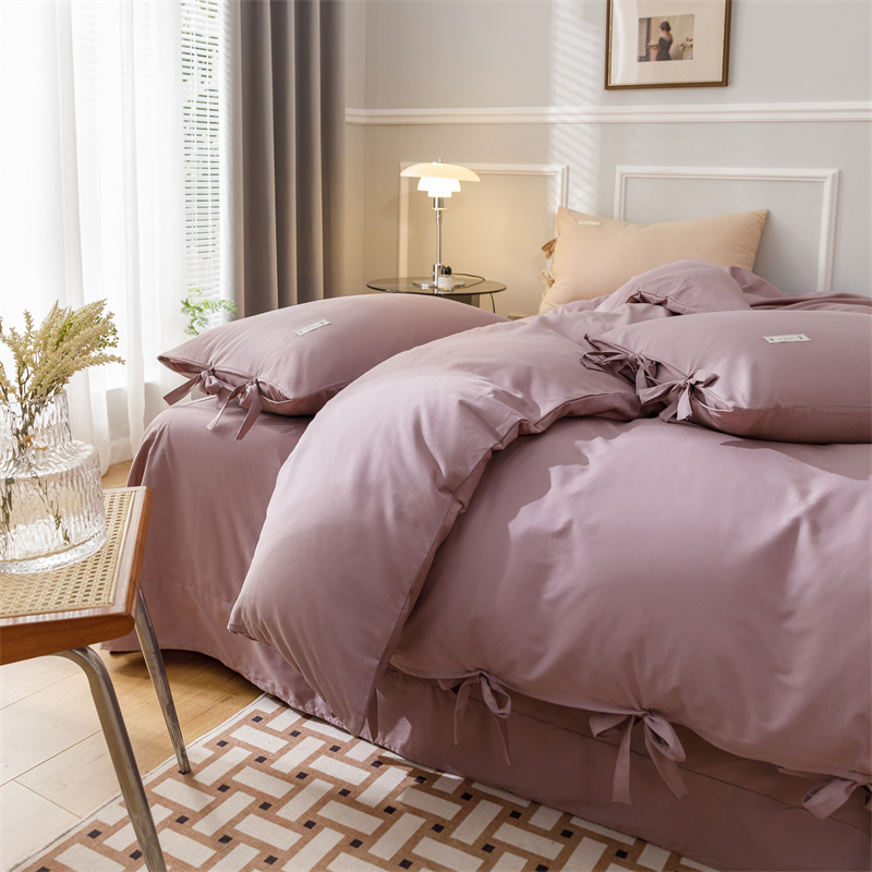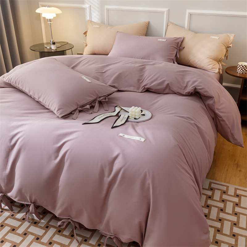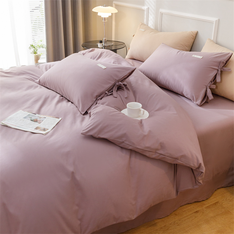 商品名称:秀色家纺 2025新款简约纯色60支加厚保暖全棉磨毛四件套 简兮-香芋紫