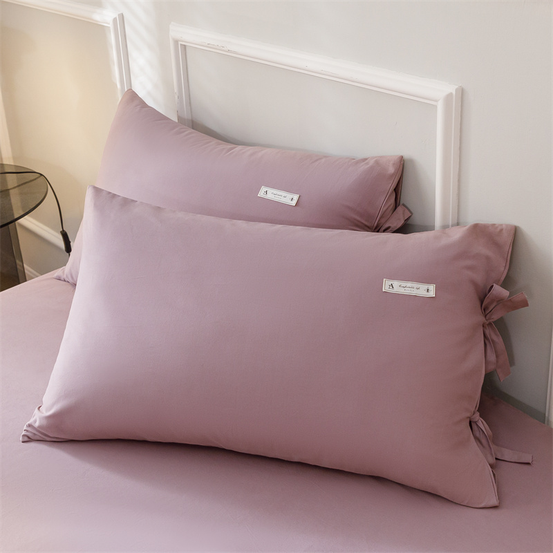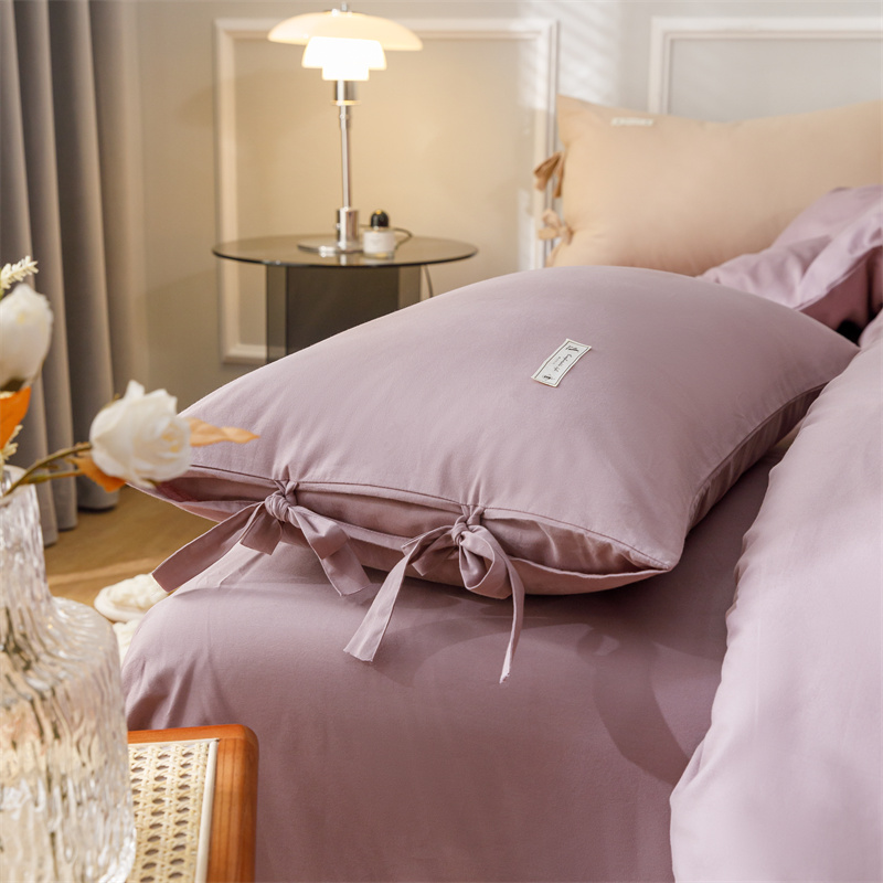 秀色家纺 2025新款简约纯色60支加厚保暖全棉磨毛四件套 简兮-香芋紫