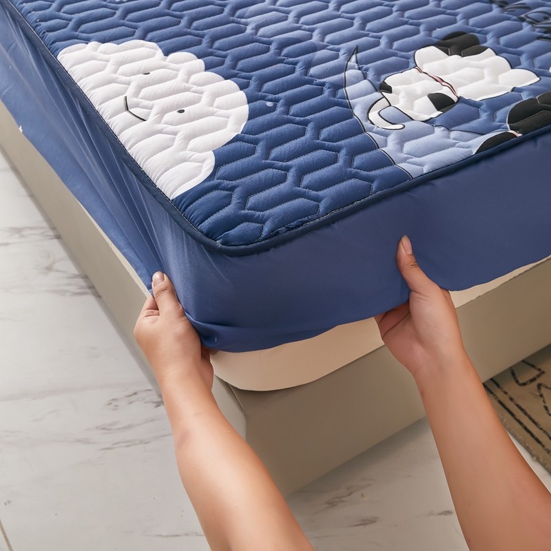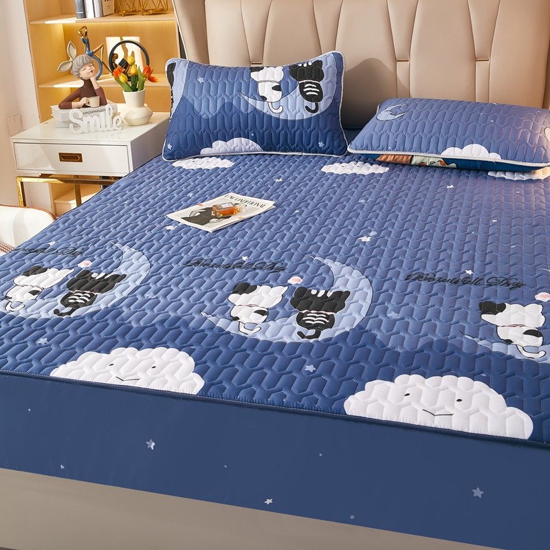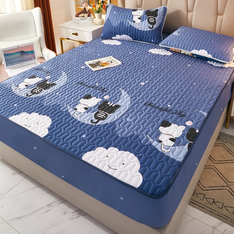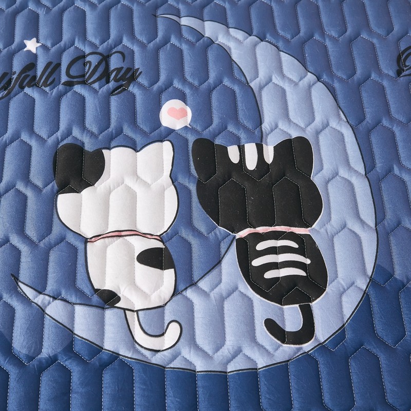 • 91家纺网 家纺一手货源 找家纺 蕾诺家纺 2023新品抗菌加厚防水隔尿夹棉床笠月亮猫