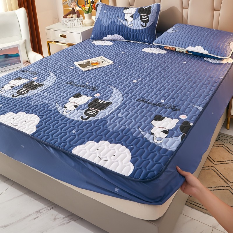 蕾诺家纺 2023新品抗菌加厚防水隔尿夹棉床笠月亮猫