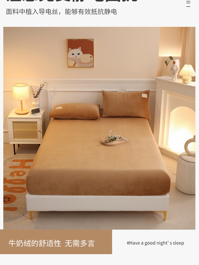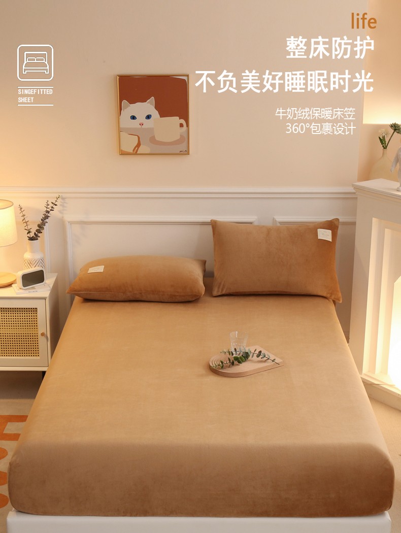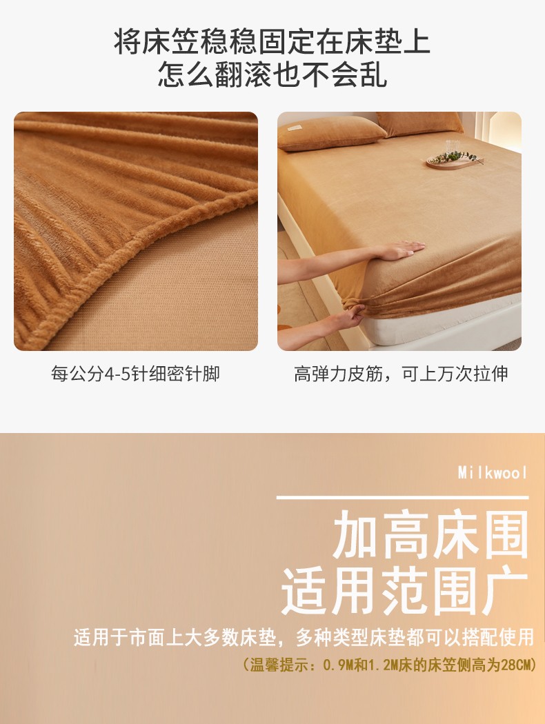商品名称:2025啊雅家居新款牛奶绒全包床笠 咖色