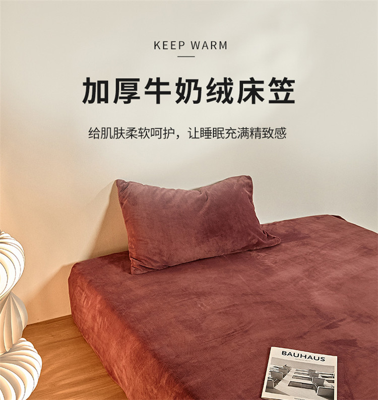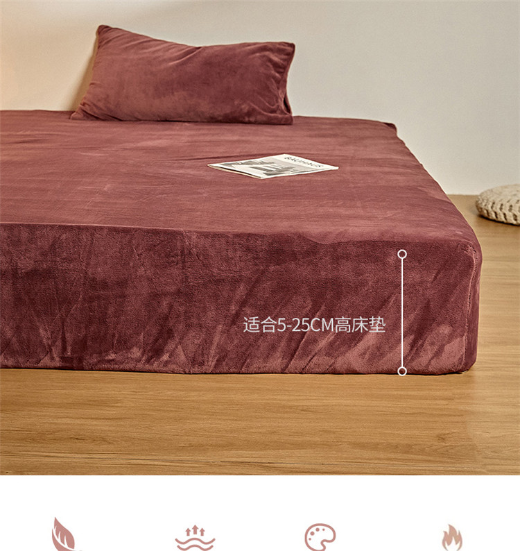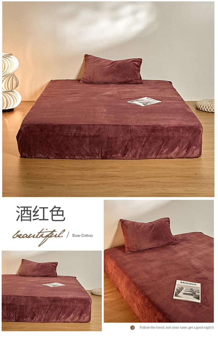 商品名称:新款纯色230g牛奶绒床笠 酒红色