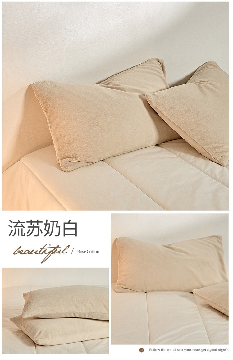 新款纯色230g牛奶绒枕套 流苏奶白 48*74cm/只