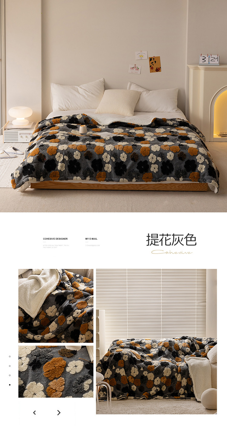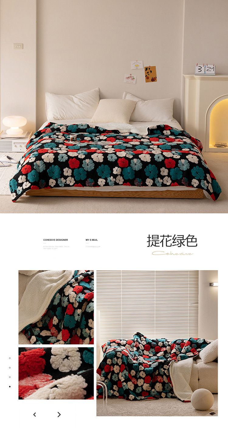 (总)萝莉 2021新款立体羊毛绒双层毯,草霉,黑色雏菊,咖色雏菊,樱桃