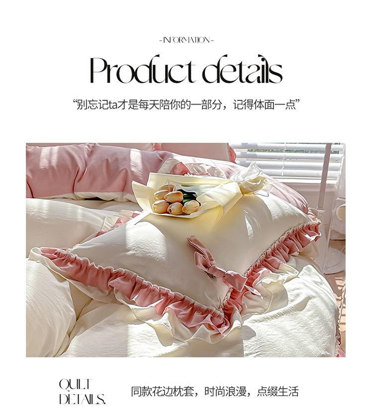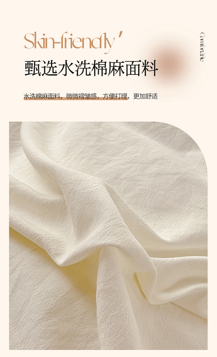 商品名称:言熙居 2024新款直播韩版花边水洗棉麻三件四件套小清新-白玉