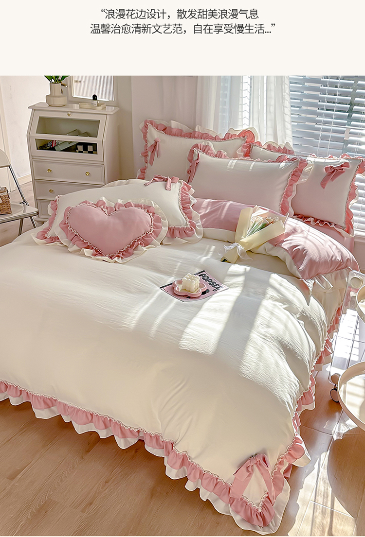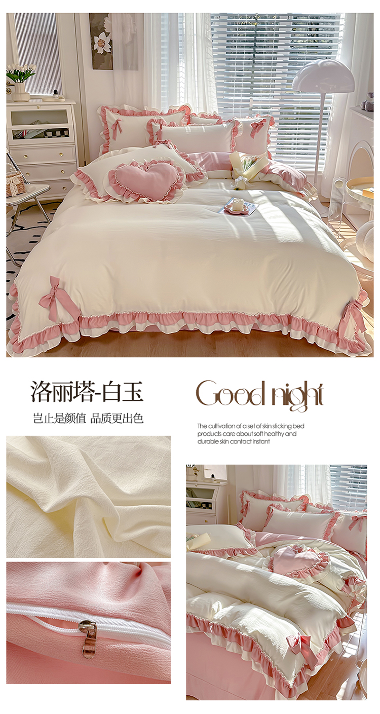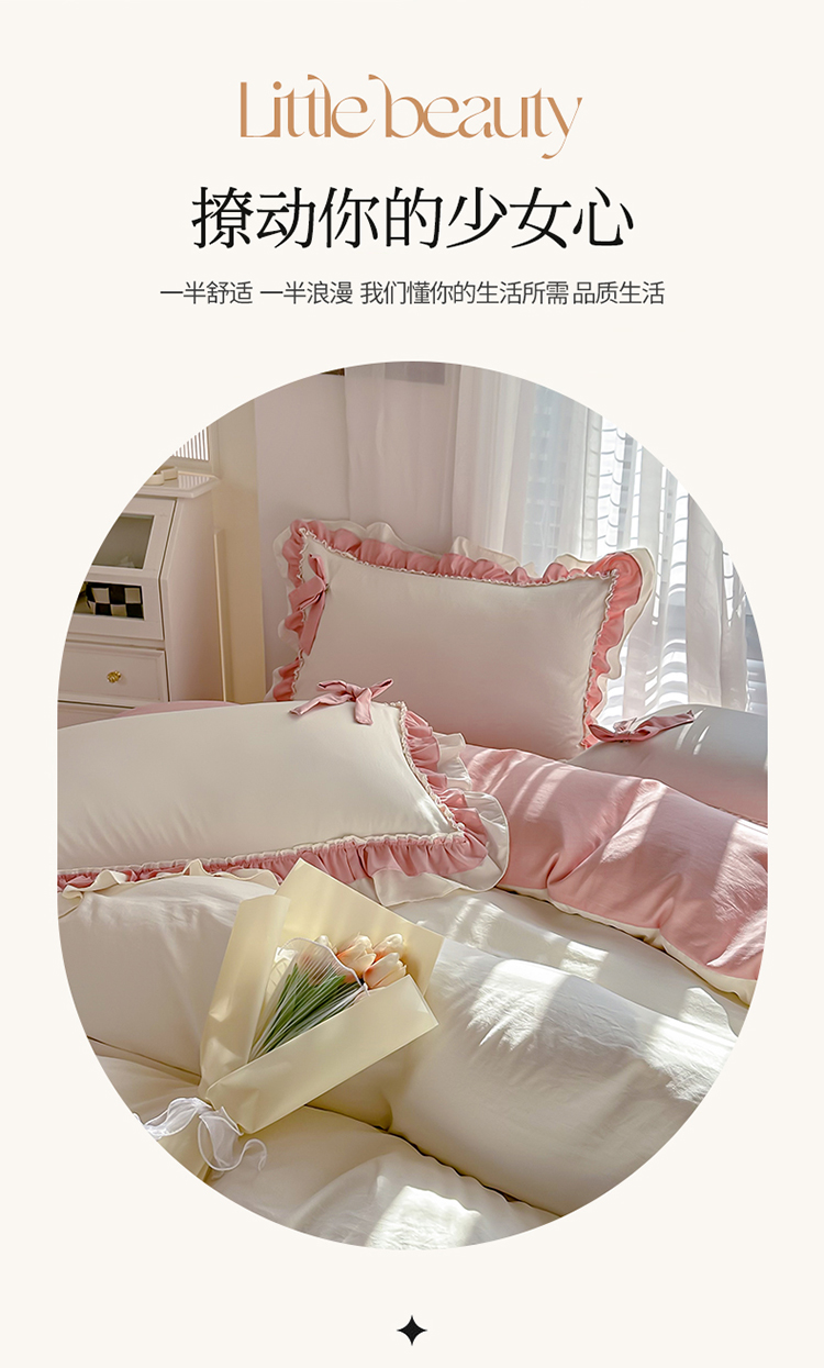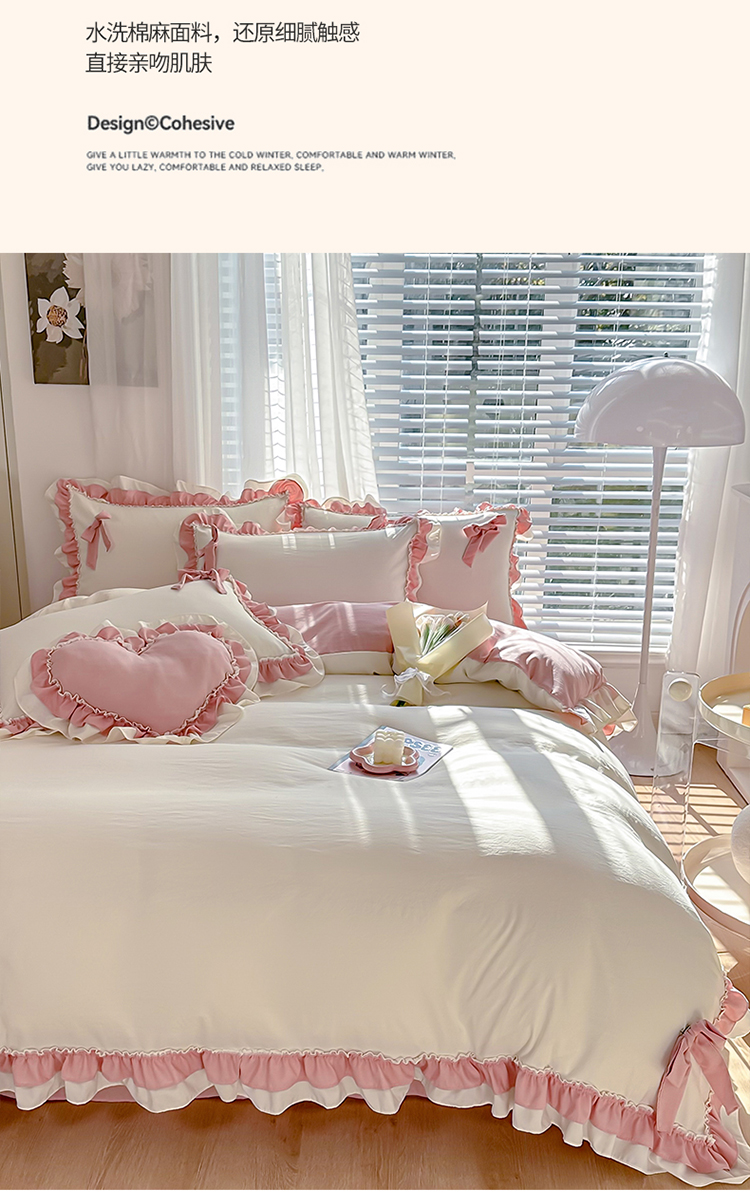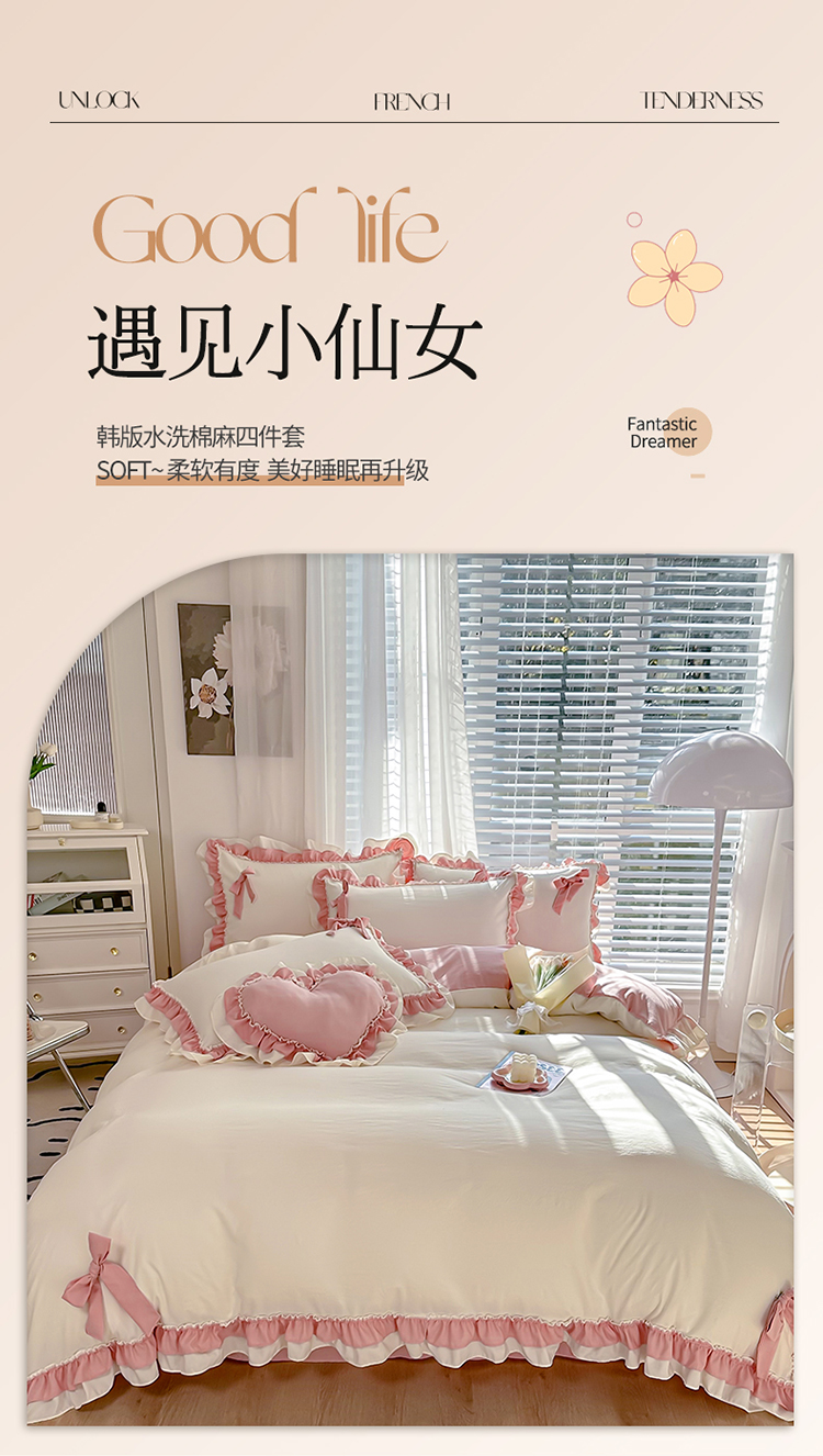 言熙居 2024新款直播韩版花边水洗棉麻三件四件套小清新-白玉