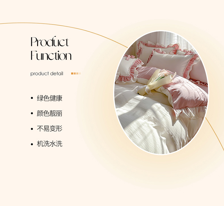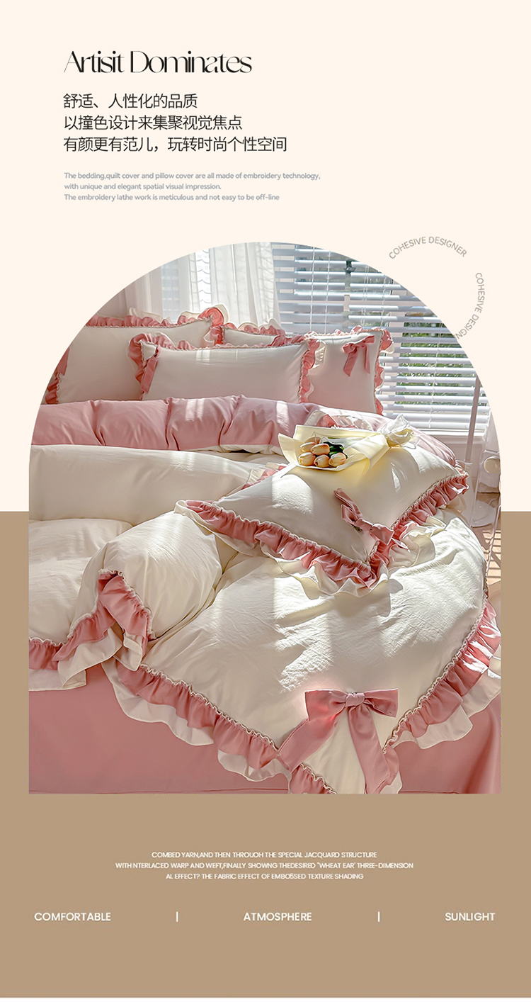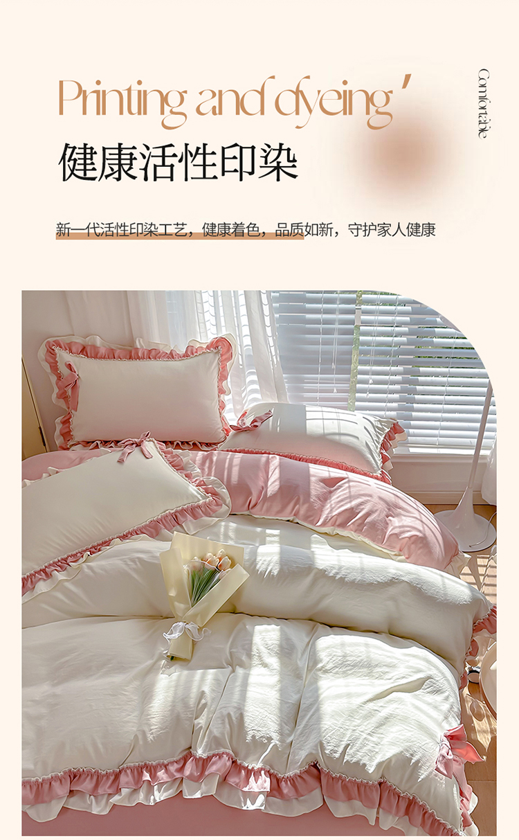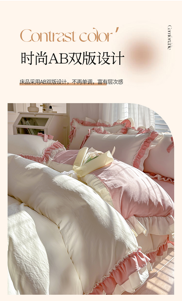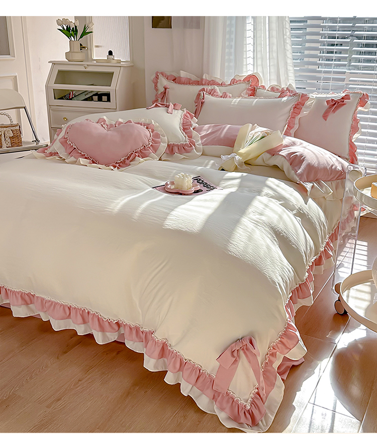 言熙居 2024新款直播韩版花边水洗棉麻三件四件套小清新-白玉