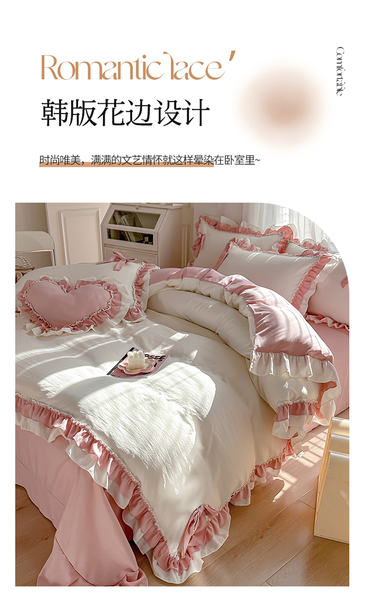 (总)言熙居家纺 2025新款A类兔毛绒韩版卡通花边四件套,蝴蝶结,幻蝶,墨枝,休闲一刻,映春,花眠