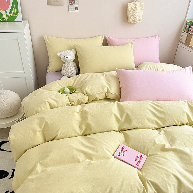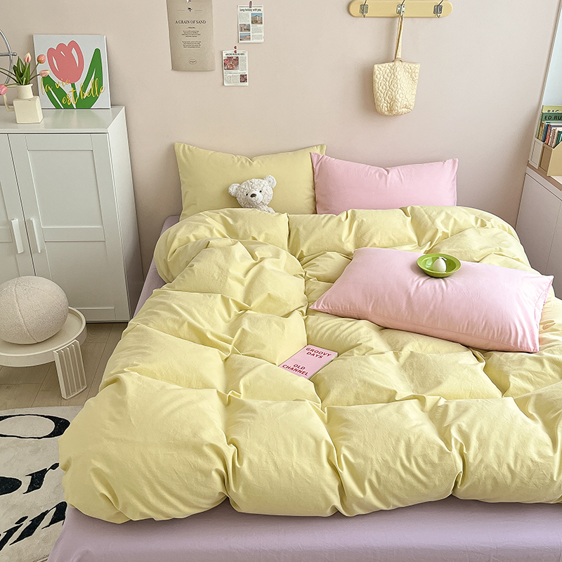 (总) 寐居 2023新款双拼全棉水洗棉纯色四件套,ins风-草绿色,ins风-湖绿色,ins风-裸粉色,ins风-迷雾蓝,ins风-奶油黄,ins风-柠檬黄,ins风-樱花粉,鹅黄+香芋紫,焦糖+卡其,军绿+焦糖,米黄+卡其,米黄+深粉,奶油玉+鹅黄,深粉+湖蓝,深蓝+焦糖,藏青+浅灰,绿+牛油果绿,米黄+浅蓝,抹茶绿+橡木黄,奶油玉+橄榄绿,奶油玉+香芋紫,浅豆沙+浅灰,深蓝+灰