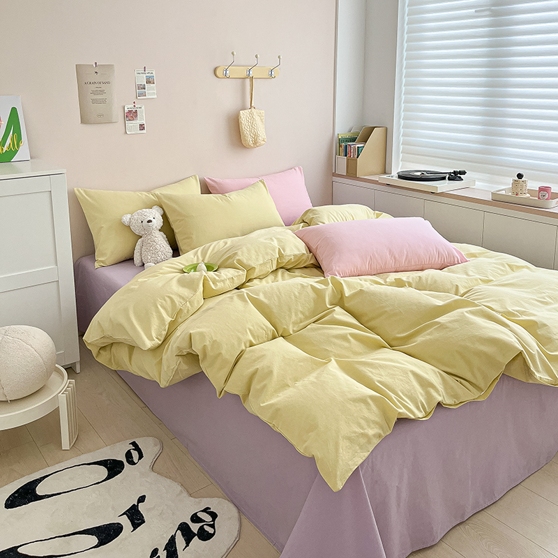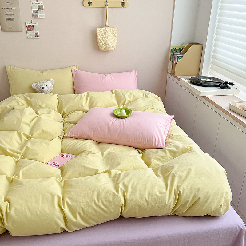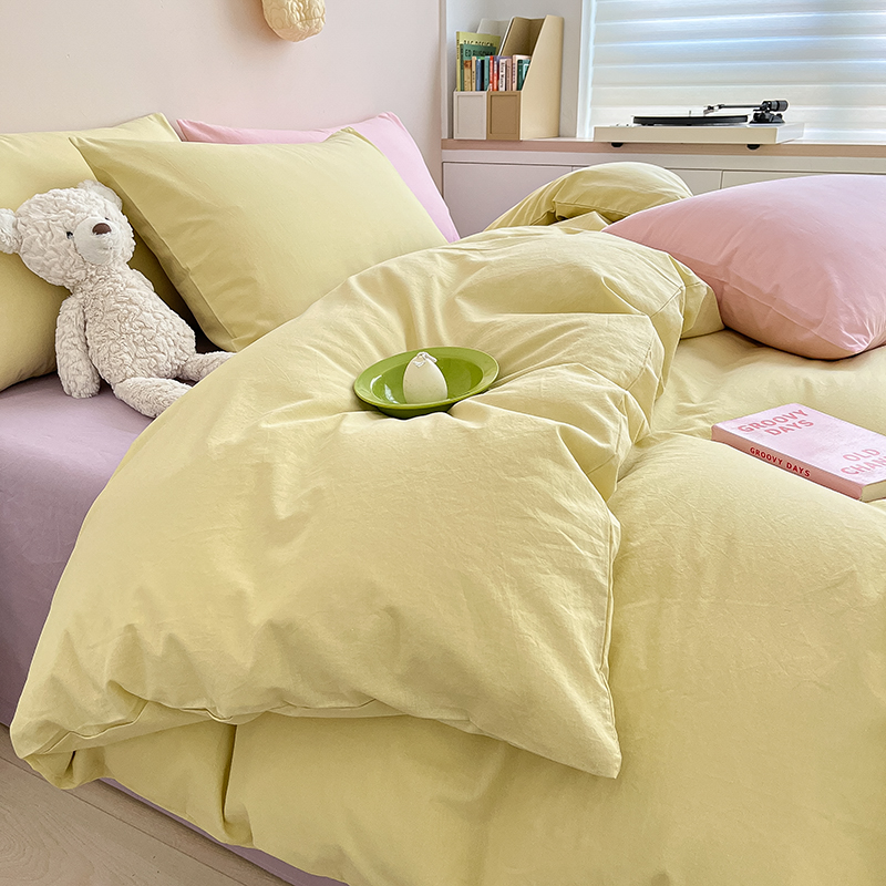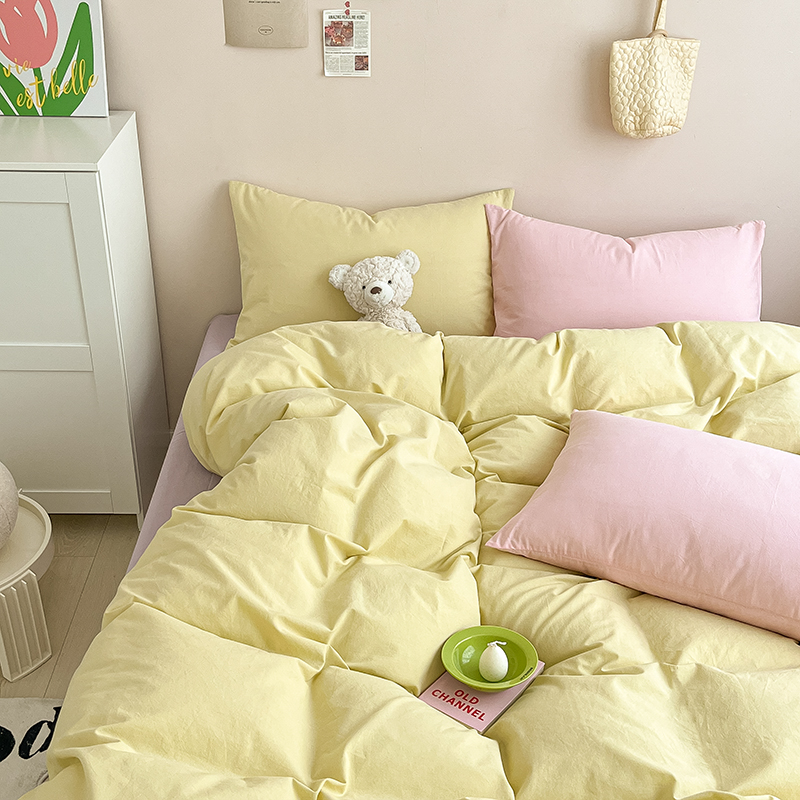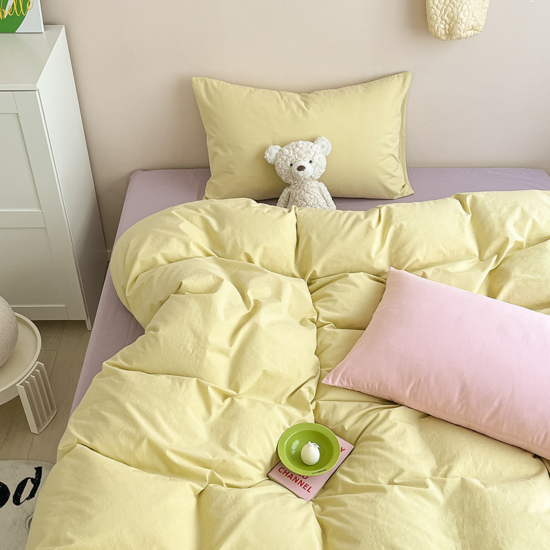 寐居 2023新款全棉水洗棉双拼色纯色单被套 ins风-柠檬黄