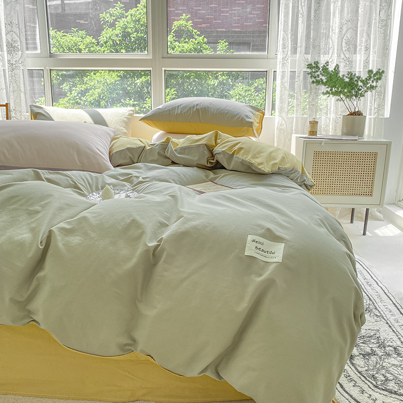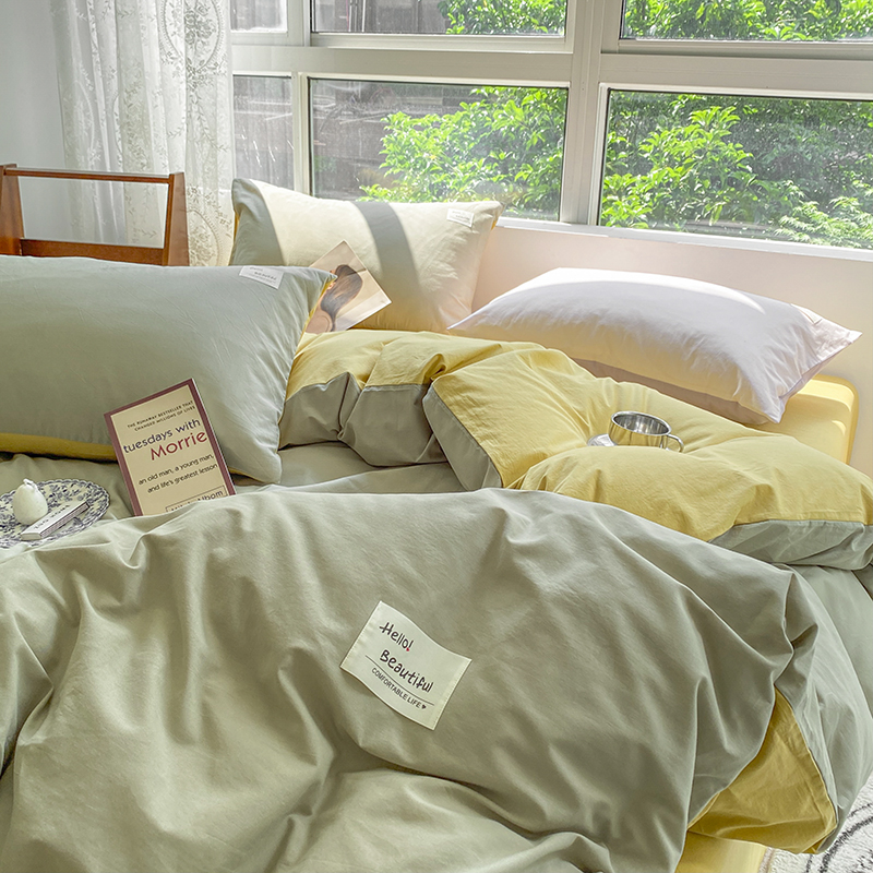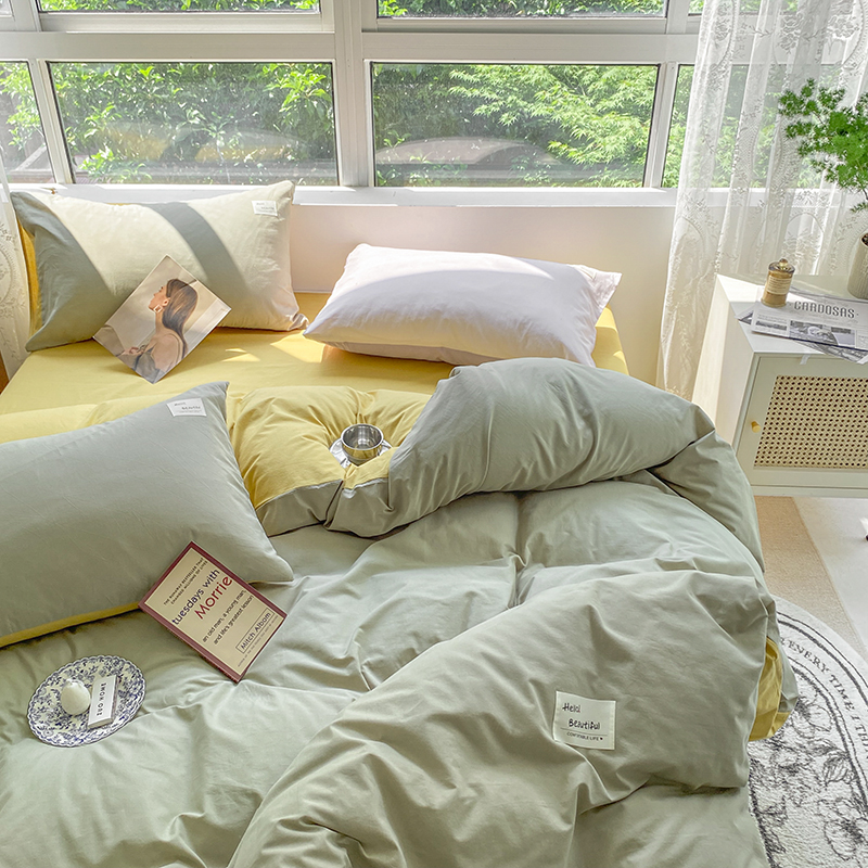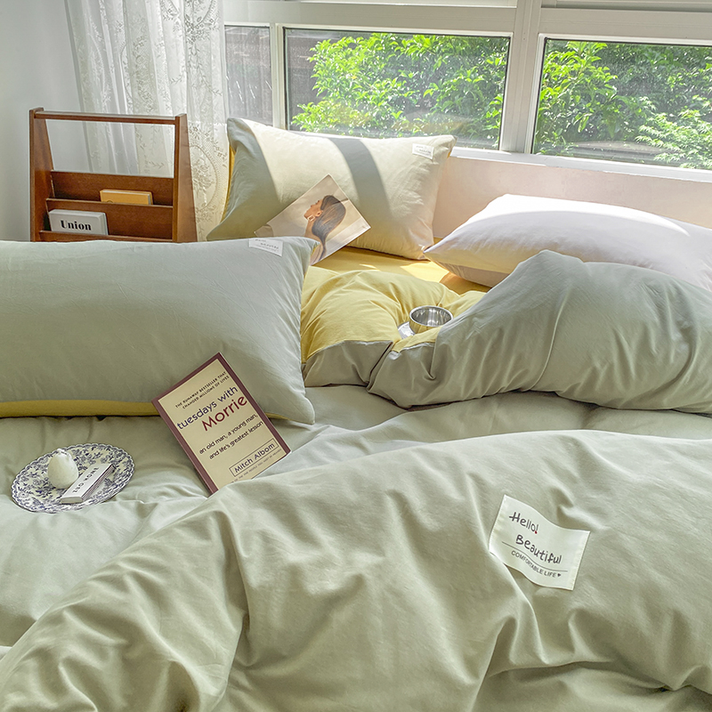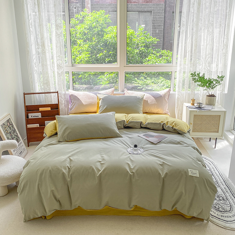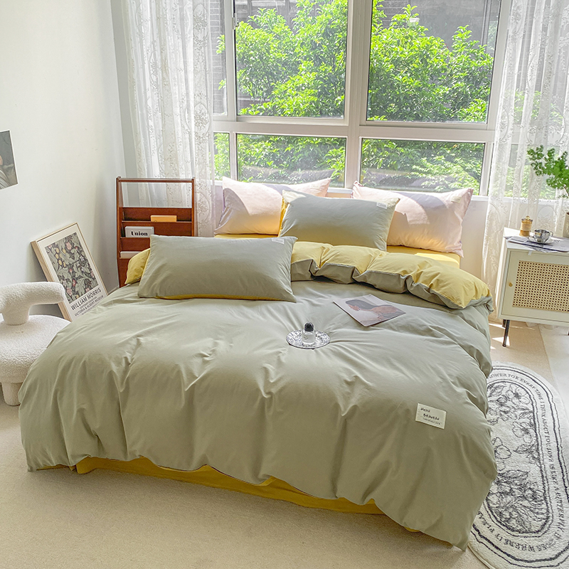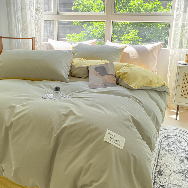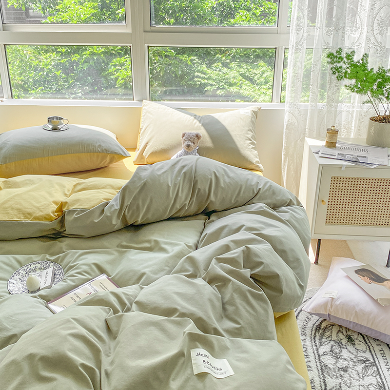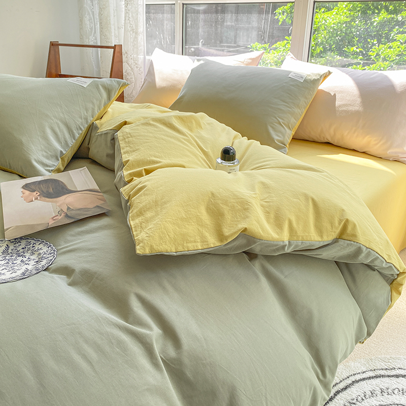 (总) 寐居 2023新款双拼全棉水洗棉纯色四件套,ins风-草绿色,ins风-湖绿色,ins风-裸粉色,ins风-迷雾蓝,ins风-奶油黄,ins风-柠檬黄,ins风-樱花粉,鹅黄+香芋紫,焦糖+卡其,军绿+焦糖,米黄+卡其,米黄+深粉,奶油玉+鹅黄,深粉+湖蓝,深蓝+焦糖,藏青+浅灰,绿+牛油果绿,米黄+浅蓝,抹茶绿+橡木黄,奶油玉+橄榄绿,奶油玉+香芋紫,浅豆沙+浅灰,深蓝+灰