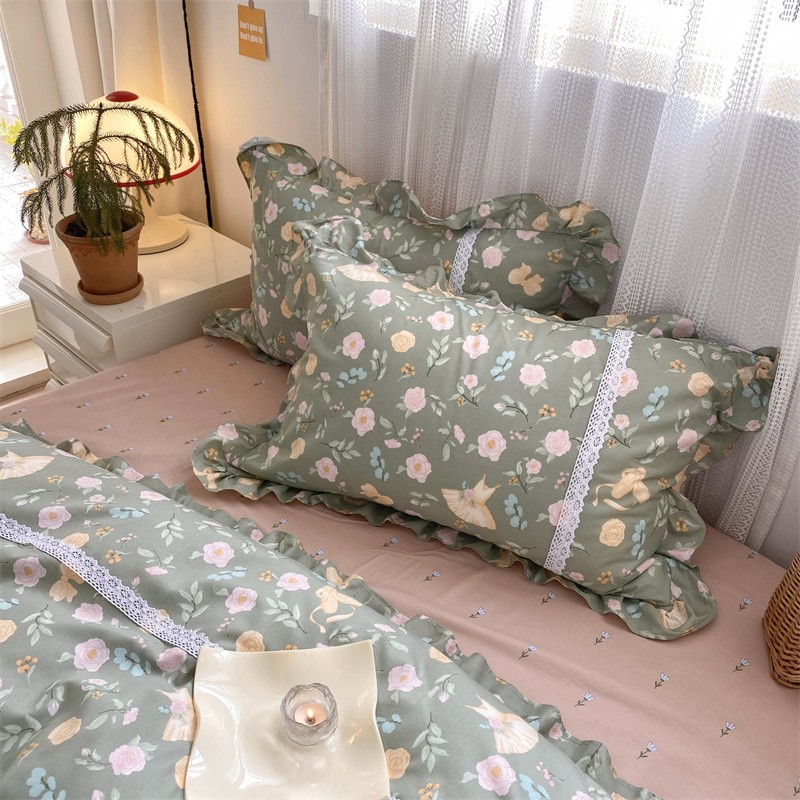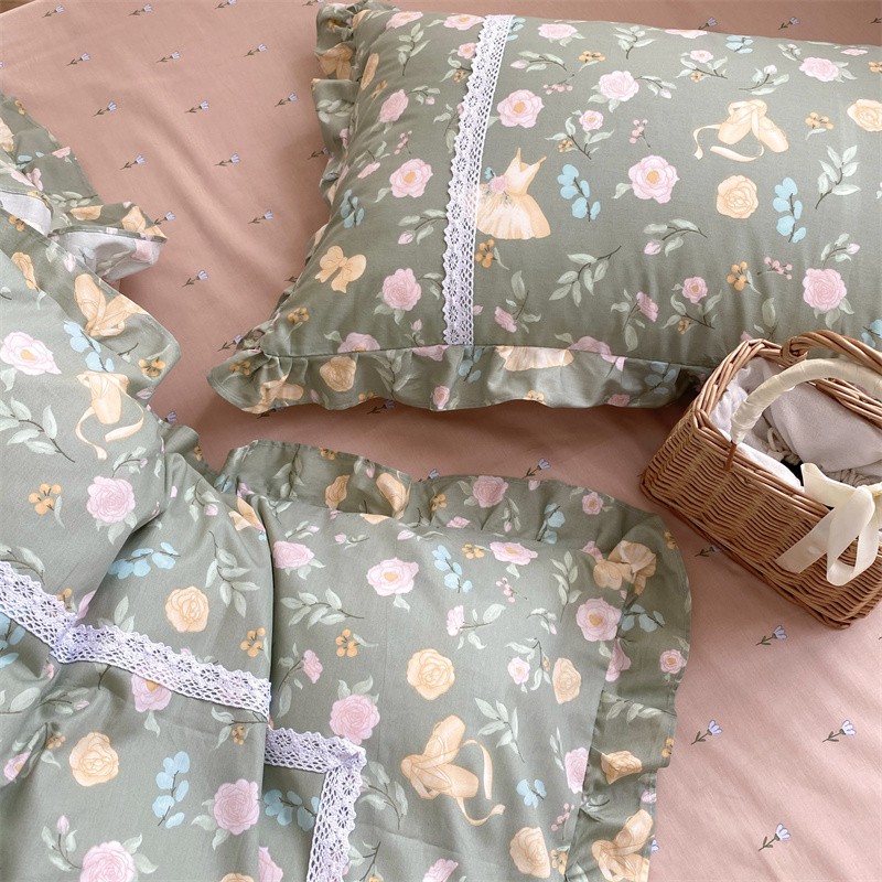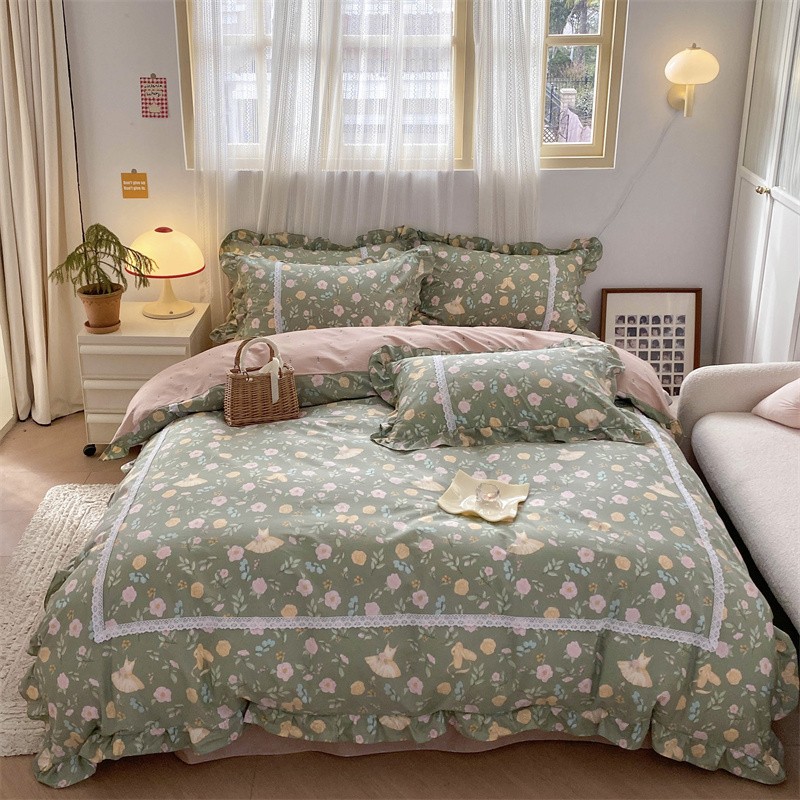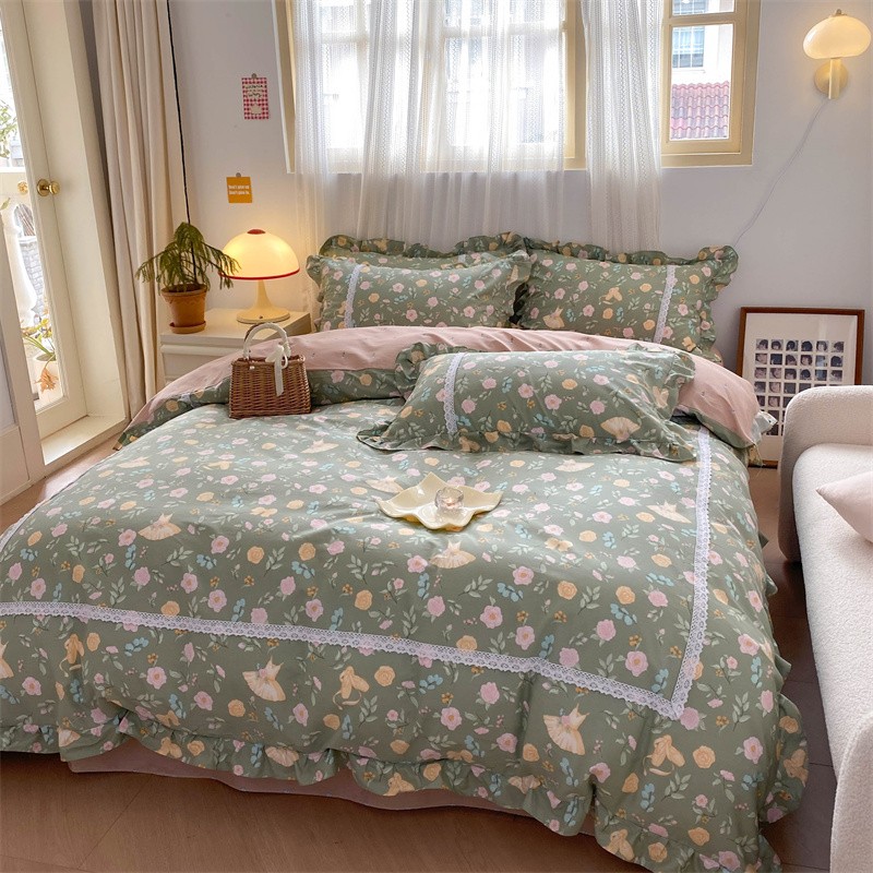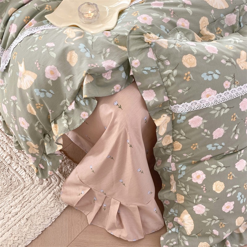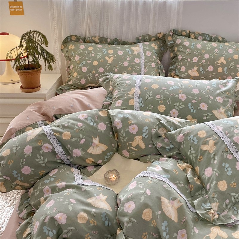 眠屿 2023春夏新款全棉蕾丝对角花边四件套 芭蕾世界
