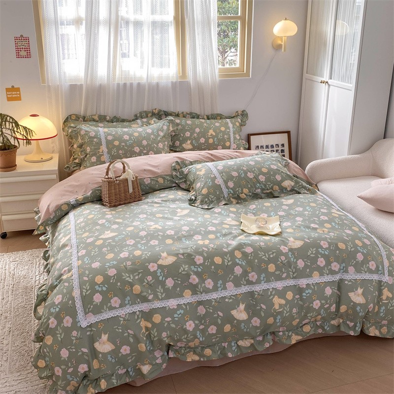 (总) 眠屿 2023春夏新款全棉蕾丝对角花边四件套,芭蕾世界,草莓小兔,草莓之恋,丁香兔,粉韵,花颂,花仙兔,花野兔,桔园,苏阳,田园奇遇,遇见浪漫,知南