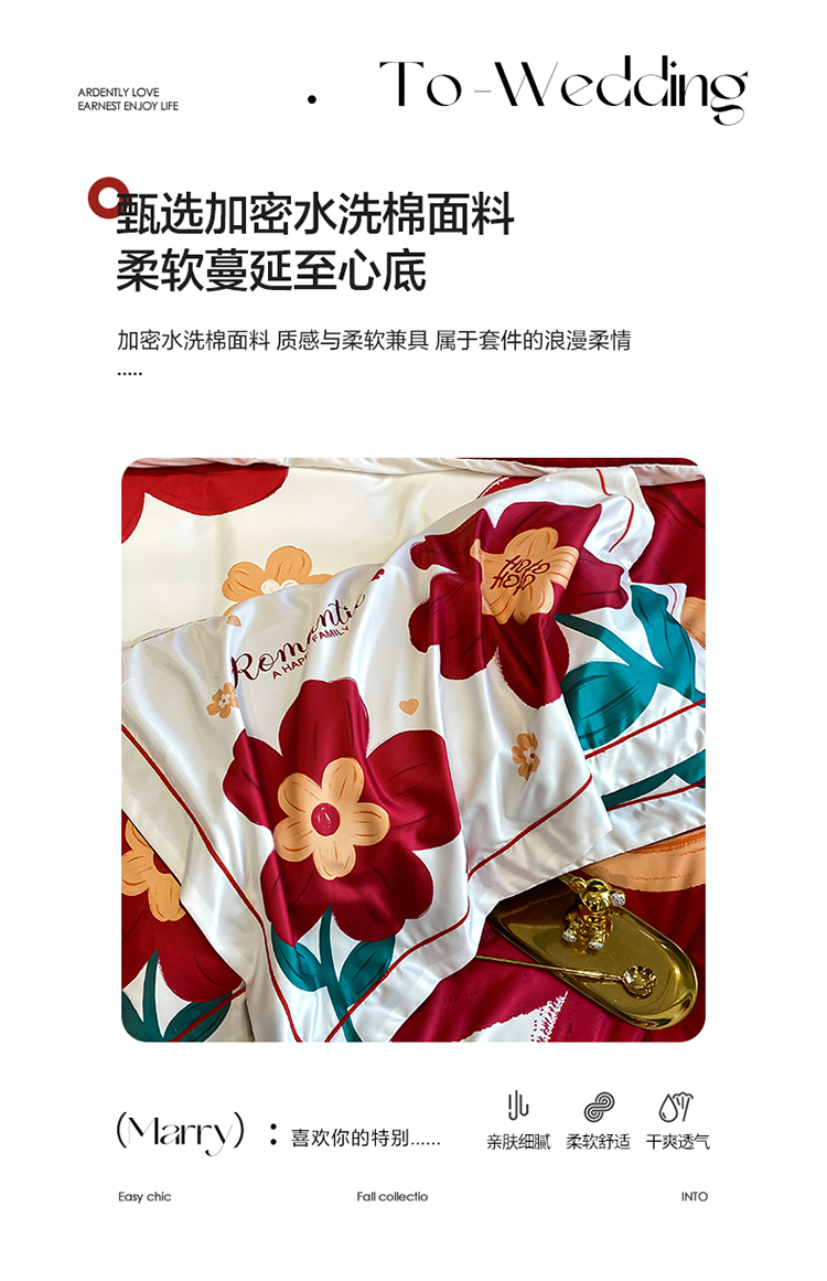 (总)花愿(原花纪) 2025新款水洗棉刺绣婚庆四件套系列,丹枫迎喜,欢喜,良缘,龙凤欢喜,玫瑰之恋,美满,如意,天禧,唯一,喜爱,心心相印,幸福,永恒之恋,钟爱一生
