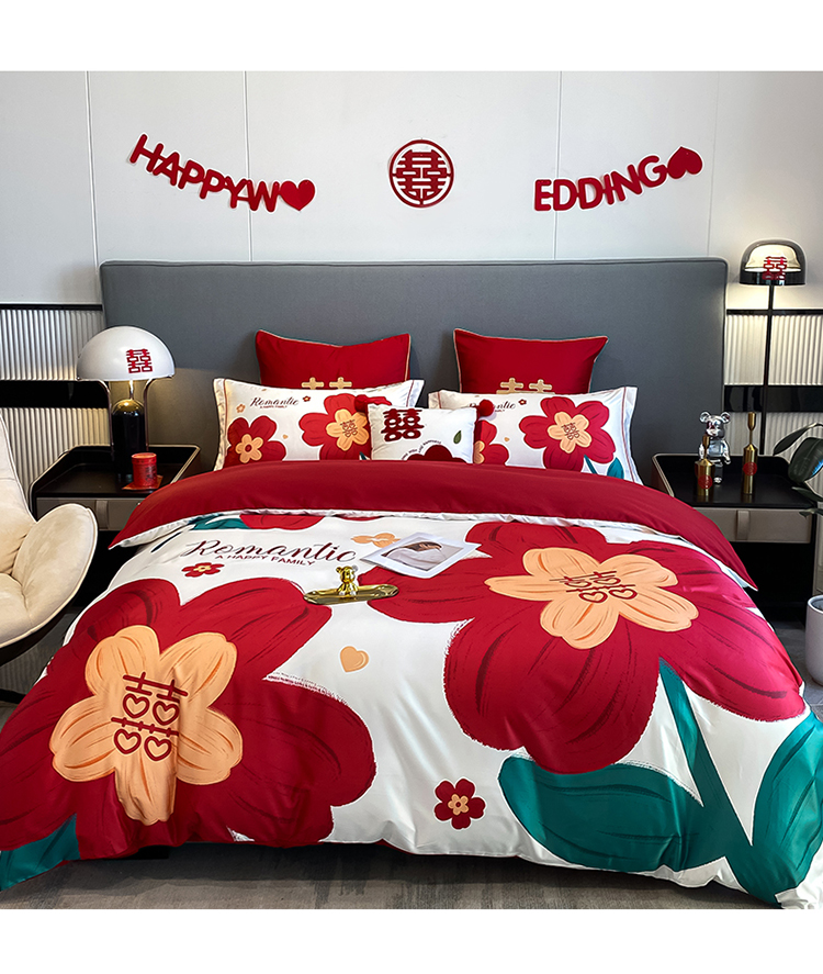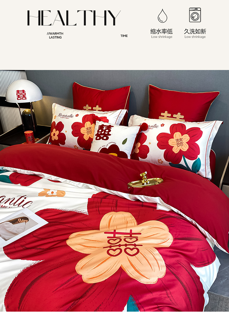 花愿 2025新款婚庆大版印花四件套 喜嫁