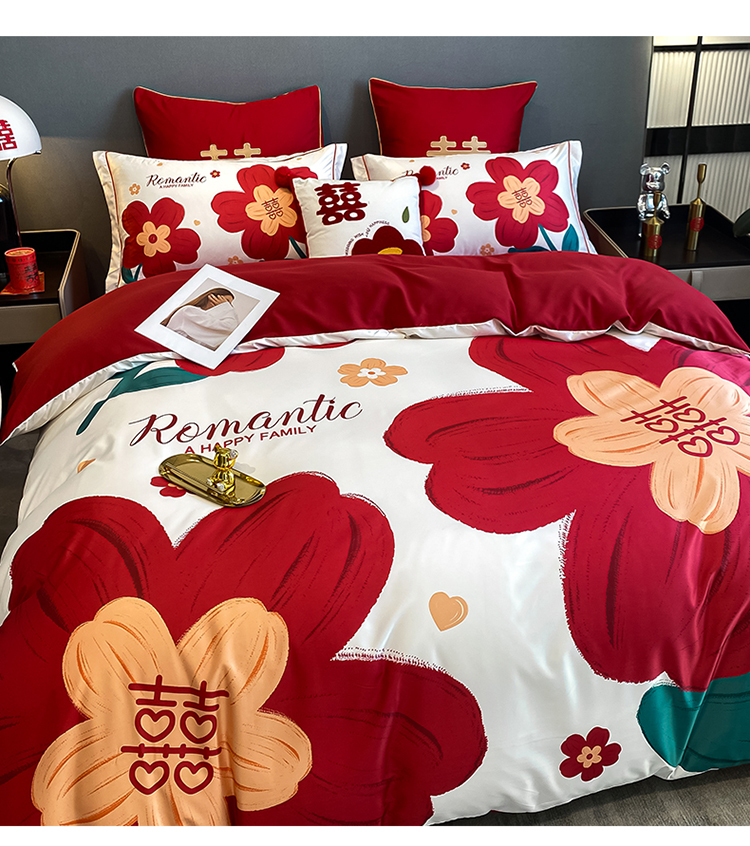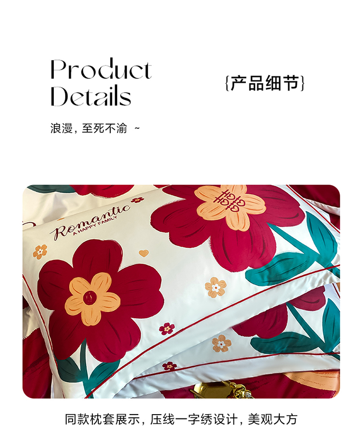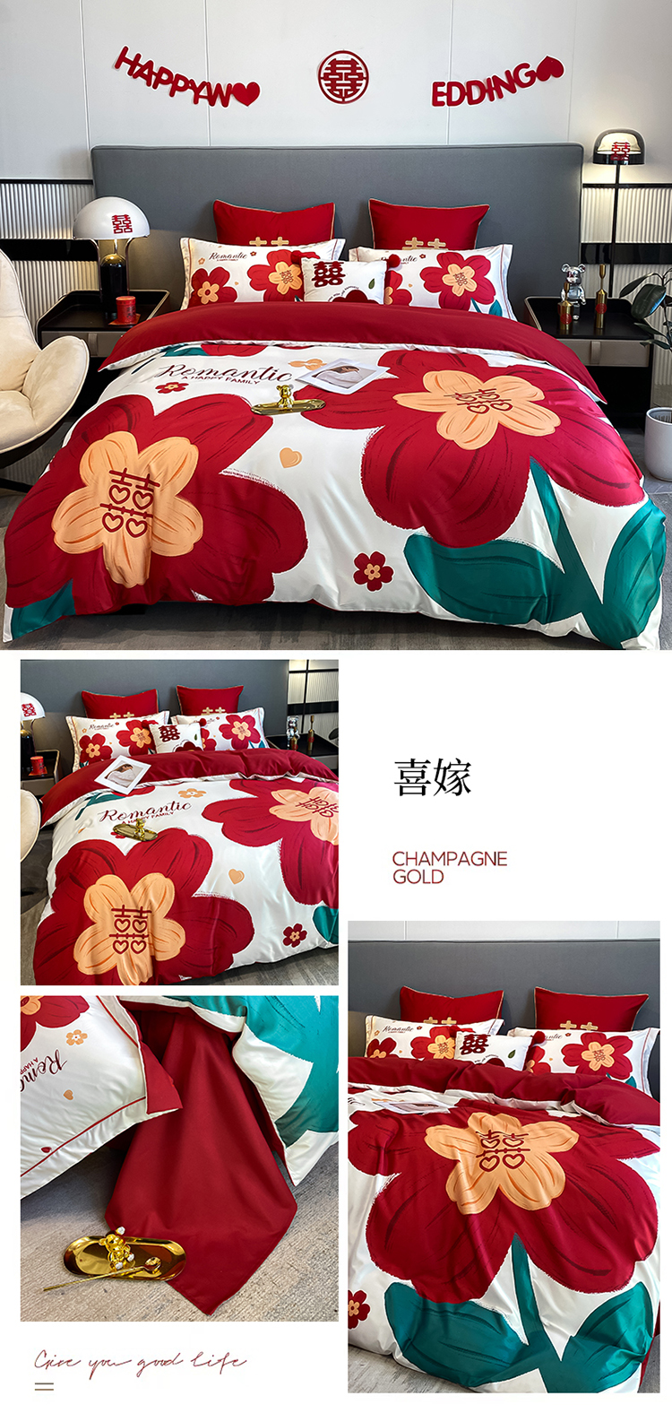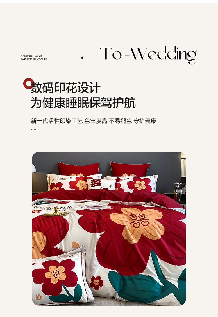 商品名称:花愿 2025新款婚庆大版印花四件套 喜嫁