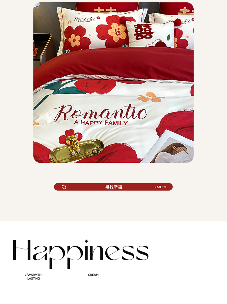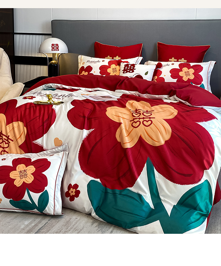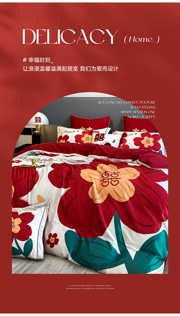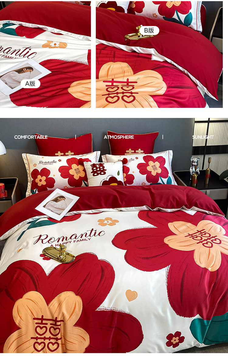 商品名称:花愿 2025新款婚庆大版印花四件套 喜嫁
