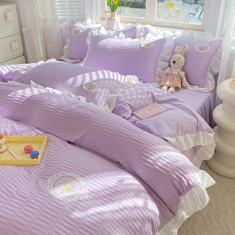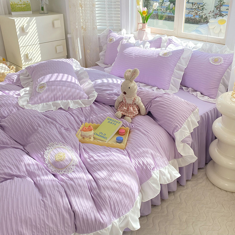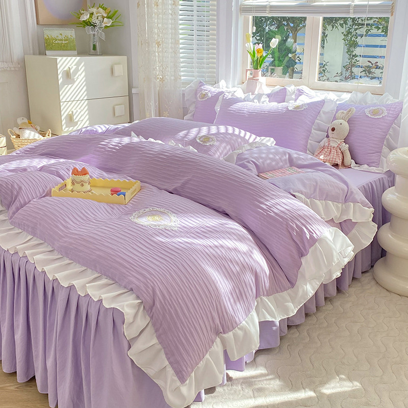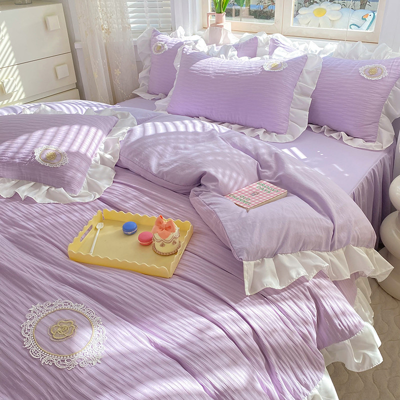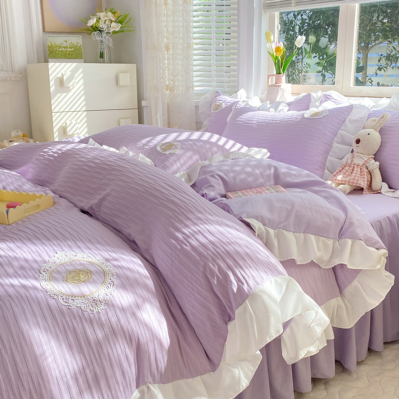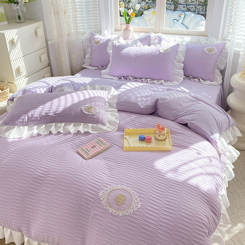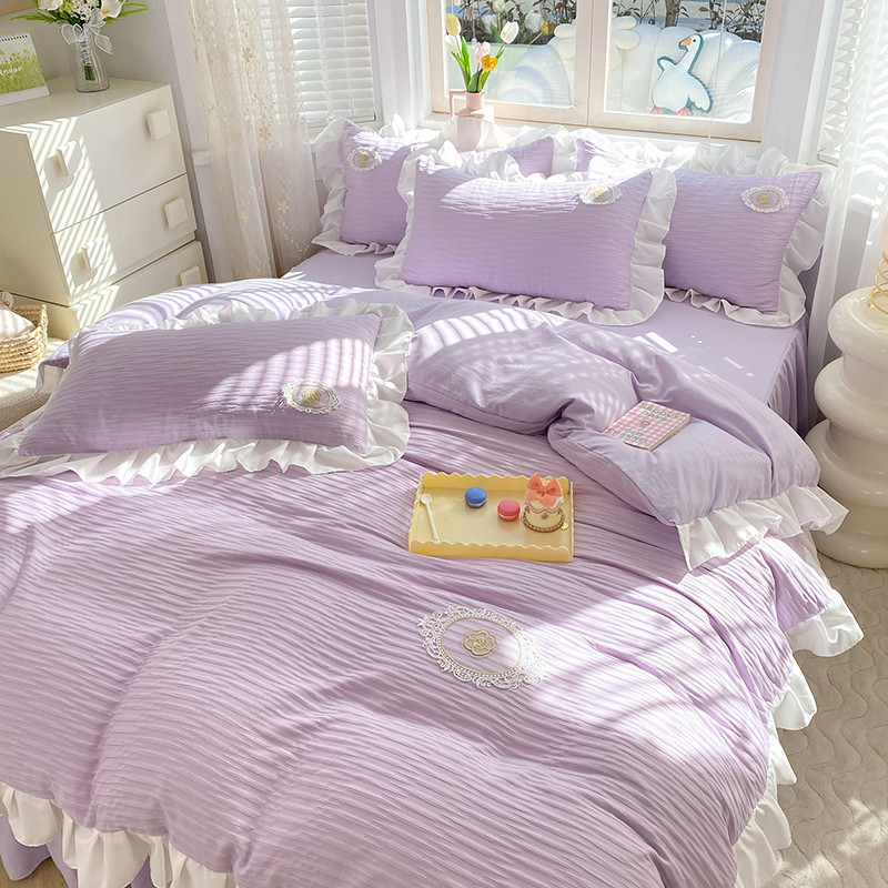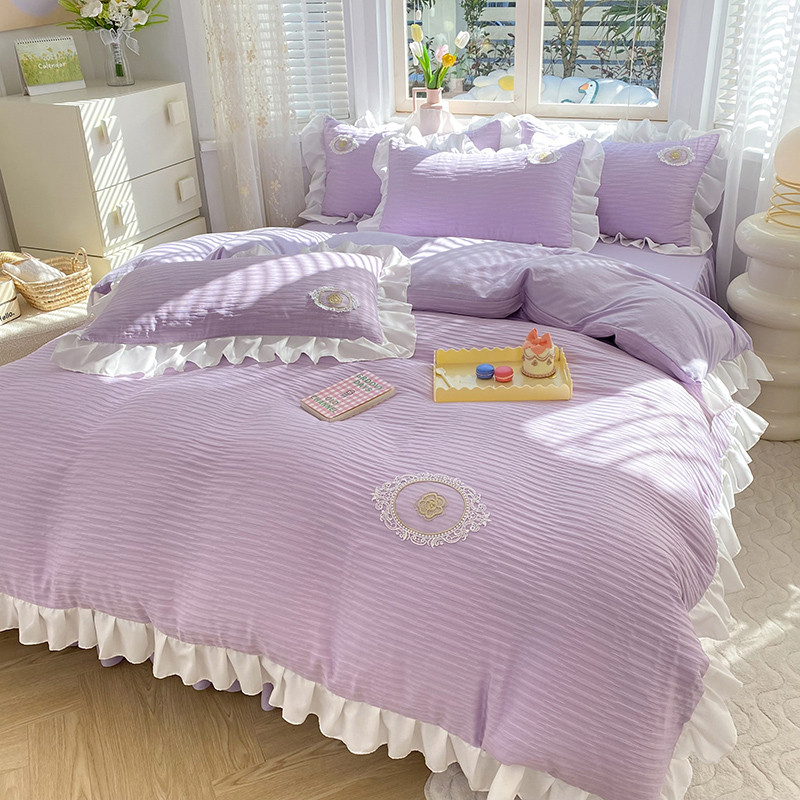 当前位置: 91家纺网 > 商品网购 > 床品套件 > 四件套 > 全棉普通四件套 > 韩约 2023新款 韩约泡泡纱仙叶系列四件套 仙叶花边款(千夏紫)