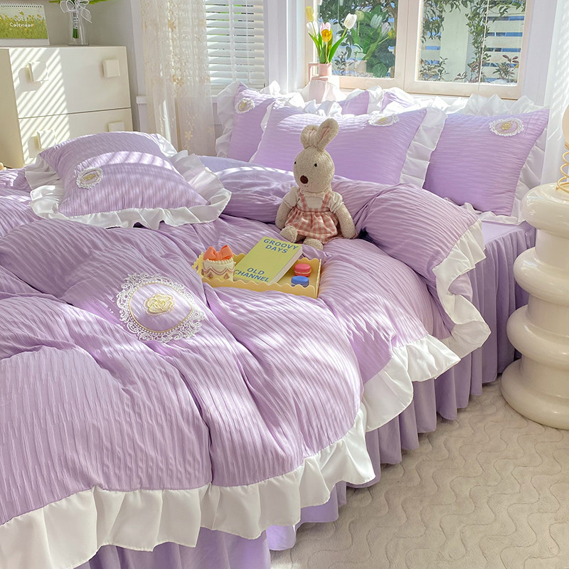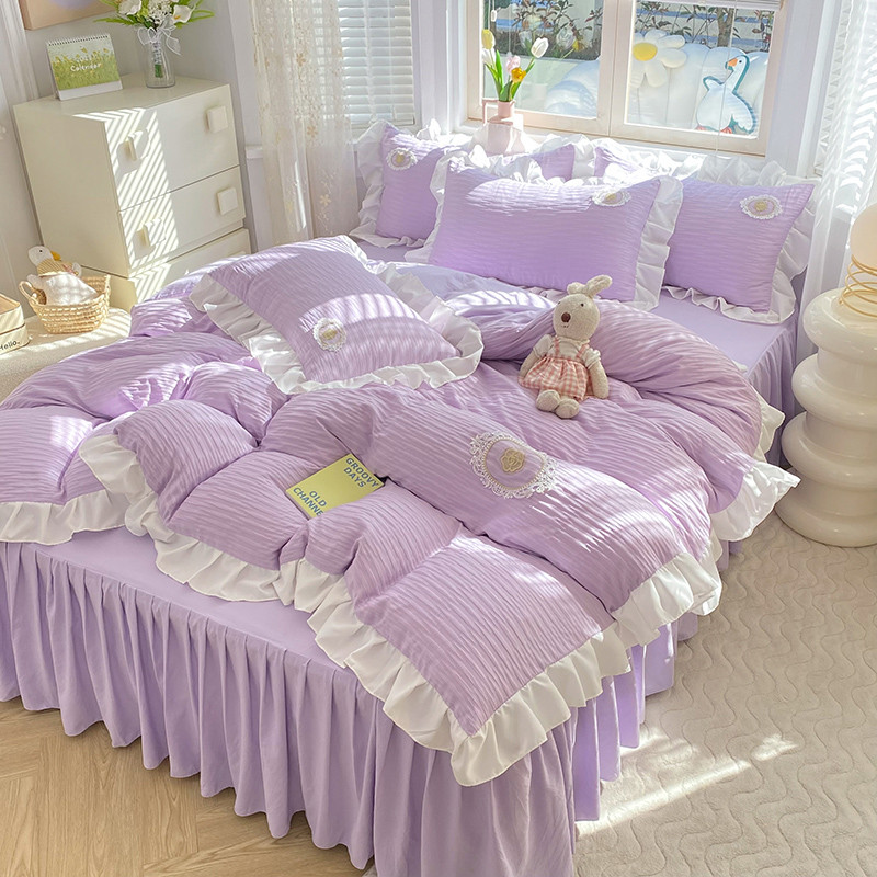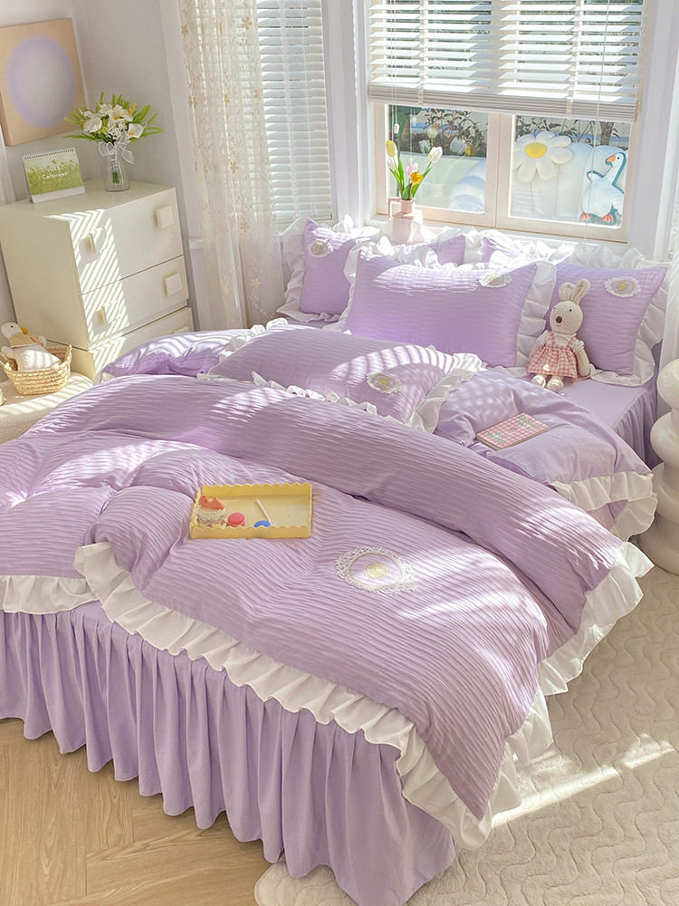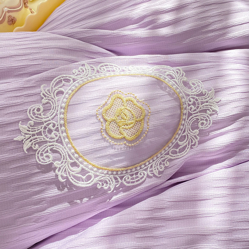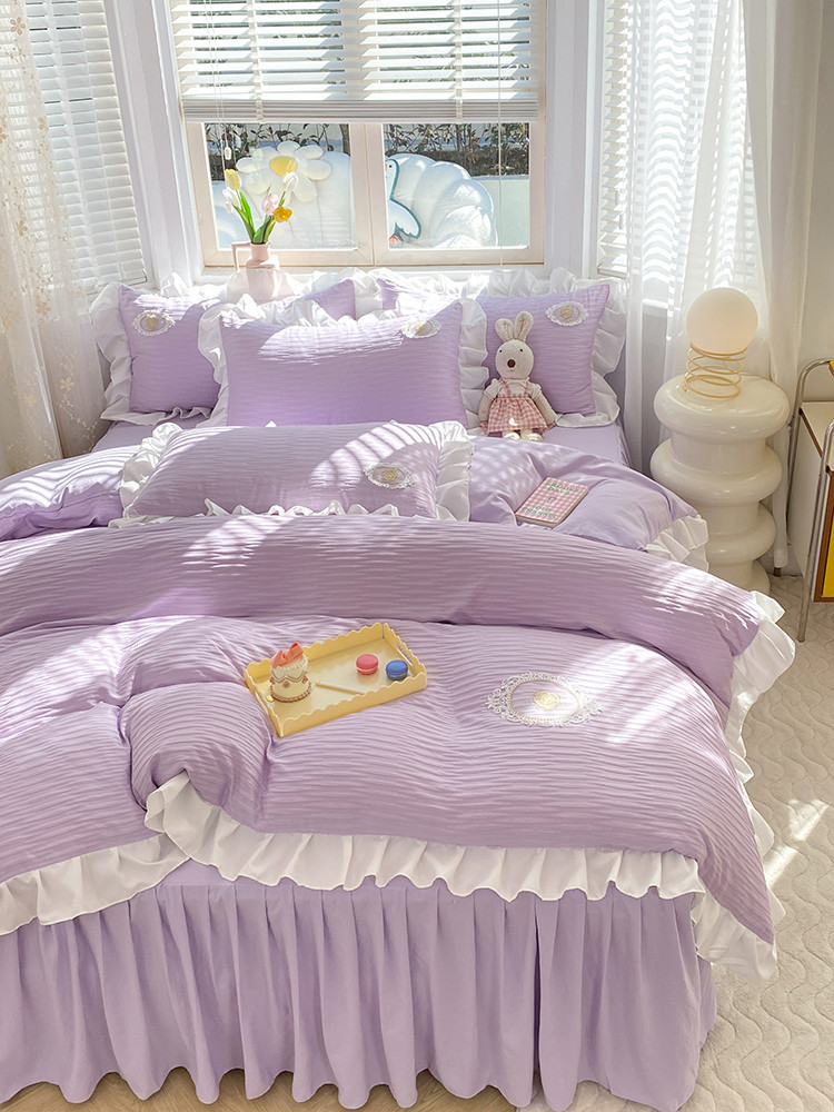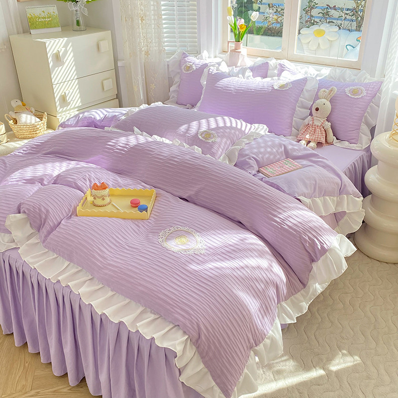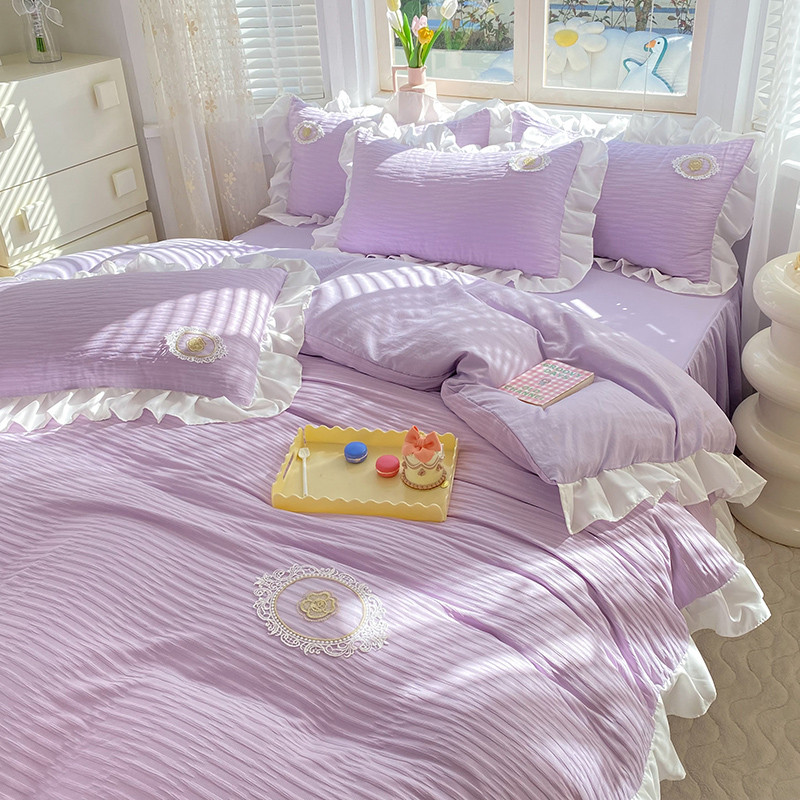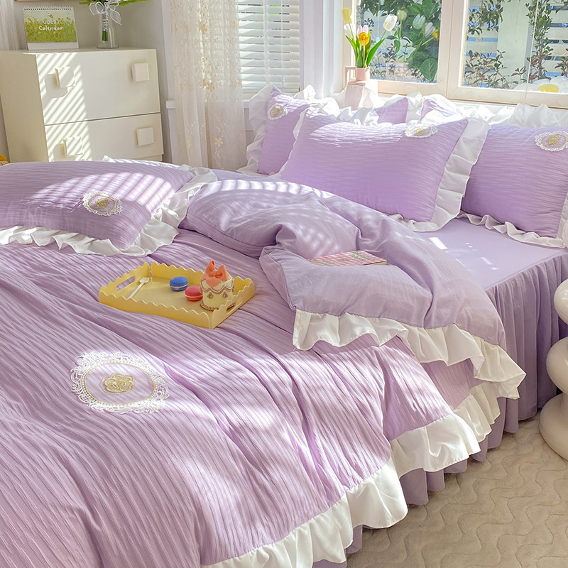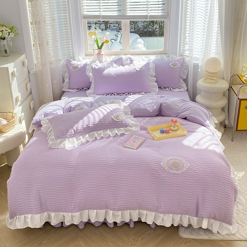 当前位置: 91家纺网 > 商品网购 > 床品套件 > 四件套 > 全棉普通四件套 > 韩约 2023新款 韩约泡泡纱仙叶系列四件套 仙叶花边款(千夏紫)