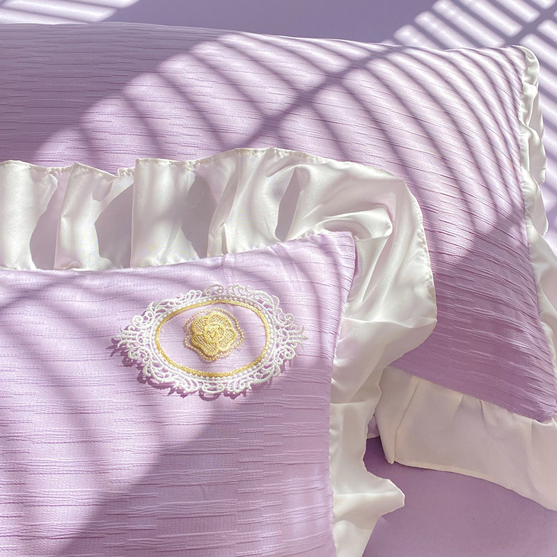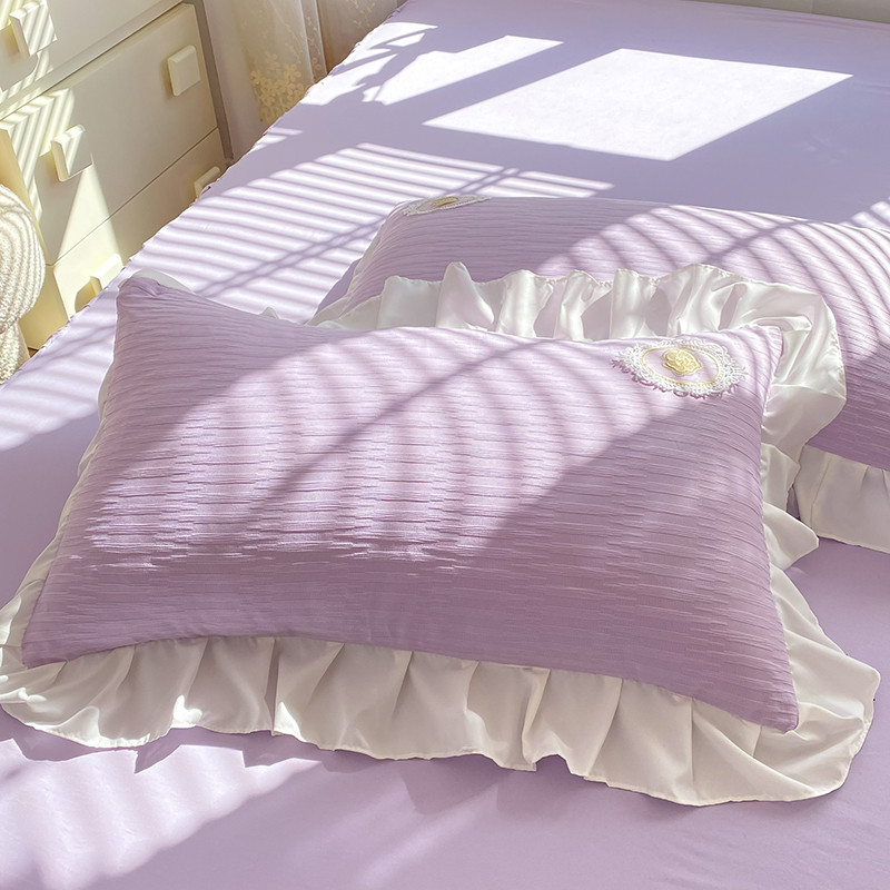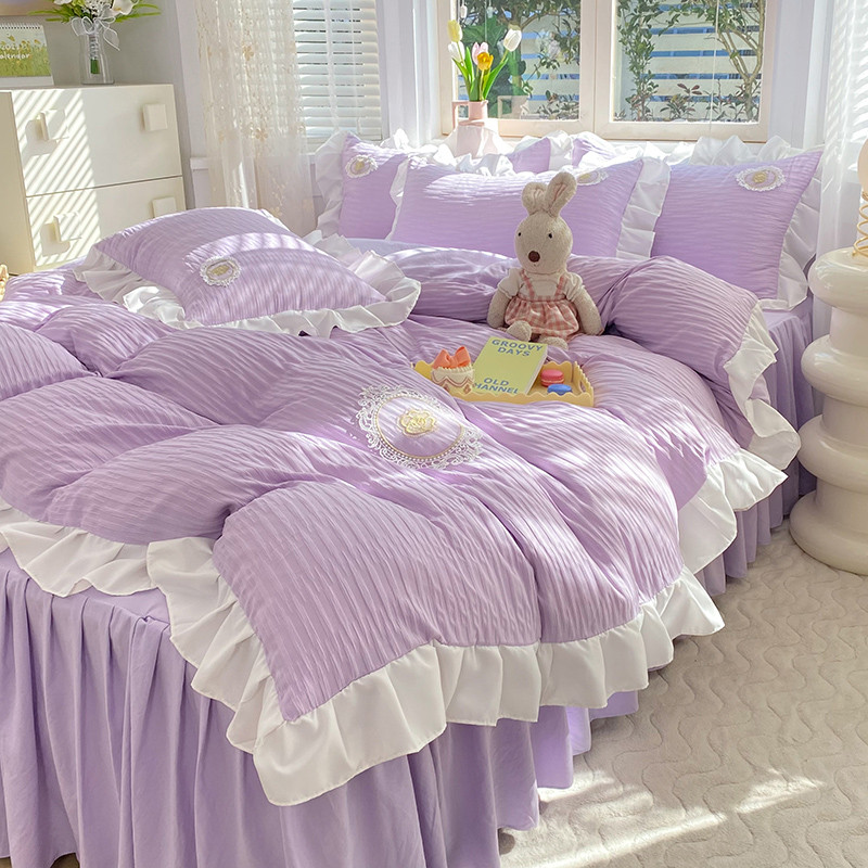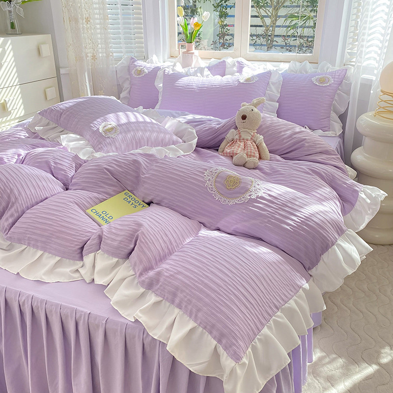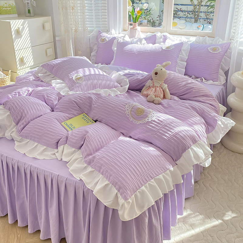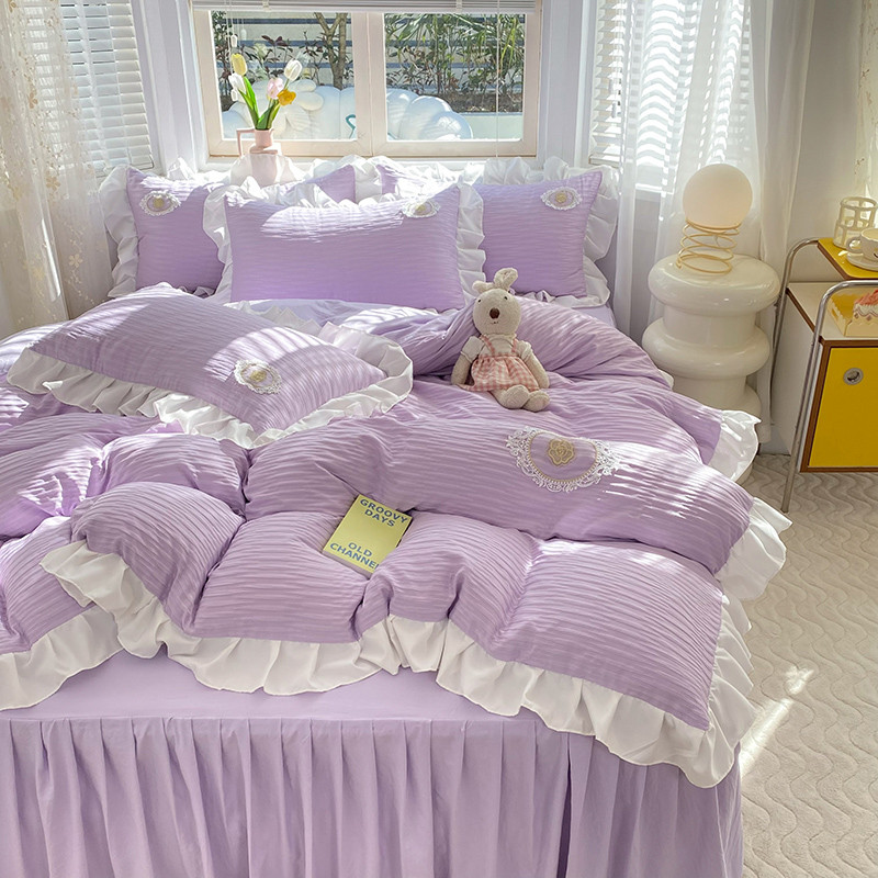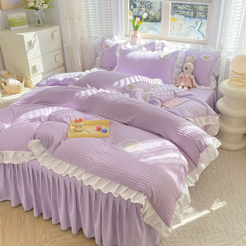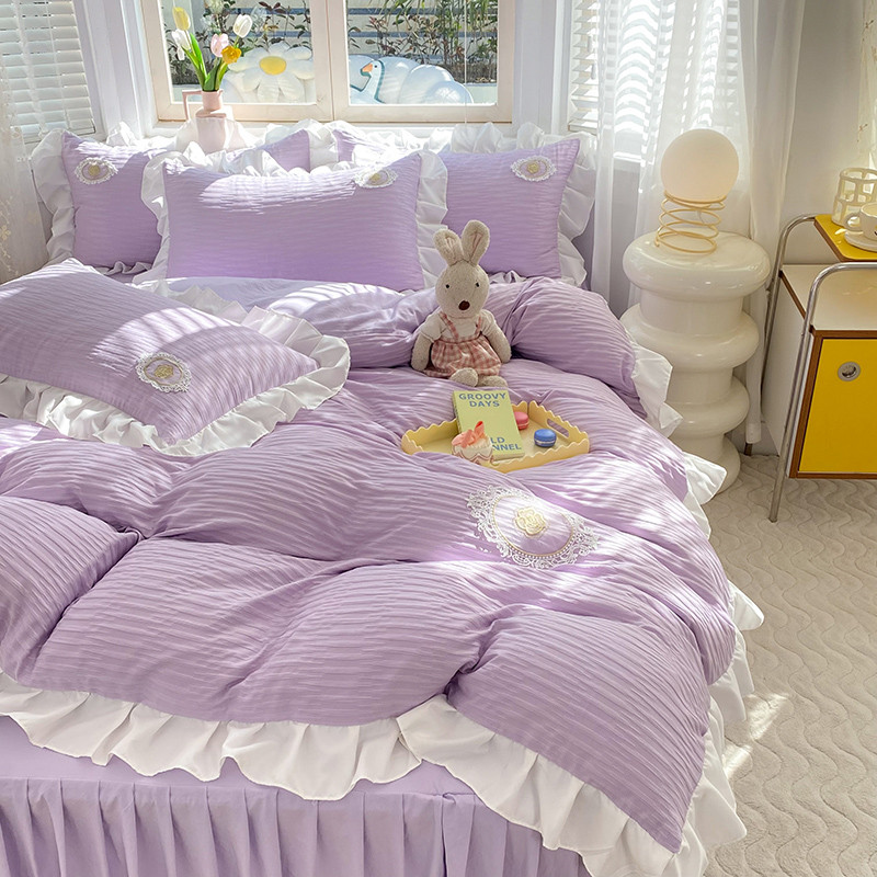 当前位置: 91家纺网 > 商品网购 > 床品套件 > 四件套 > 全棉普通四件套 > 韩约 2023新款 韩约泡泡纱仙叶系列四件套 仙叶花边款(千夏紫)