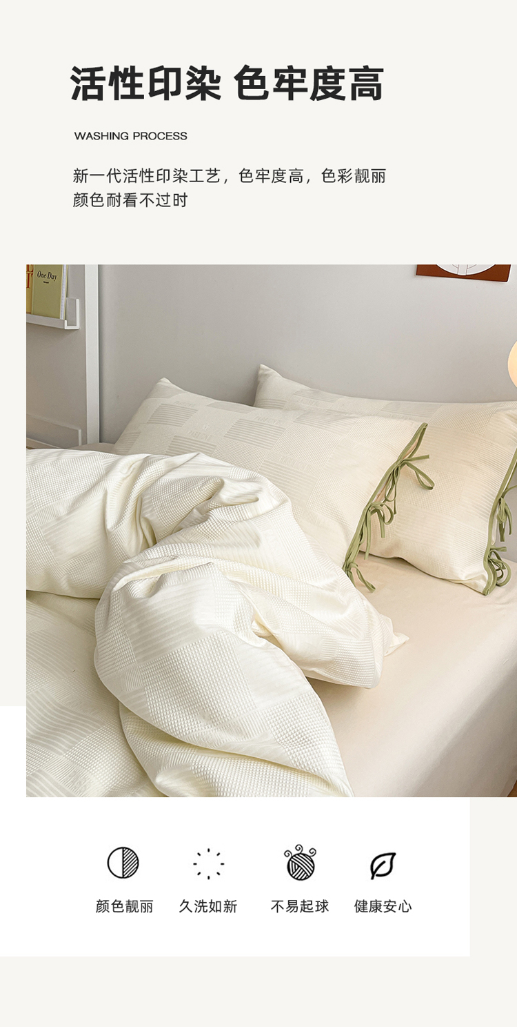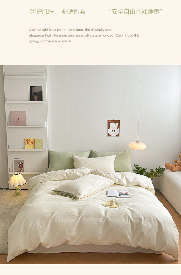 (总)玛奇朵 2025新款韩系少女全棉立体提花四件套-,青纱粉黛