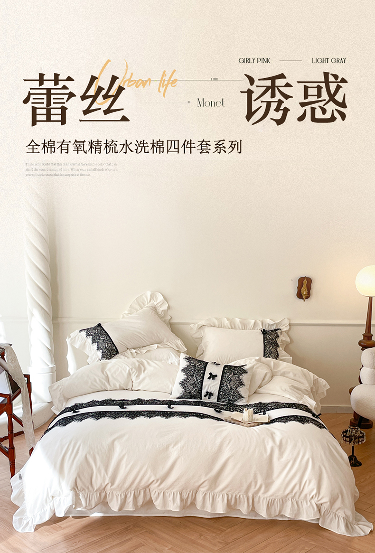 (总)玛奇朵 2023新款全棉有氧水洗棉蕾丝小香风-安娜系列,安娜-木槿紫,安娜-奶咖色,安娜-栀子白