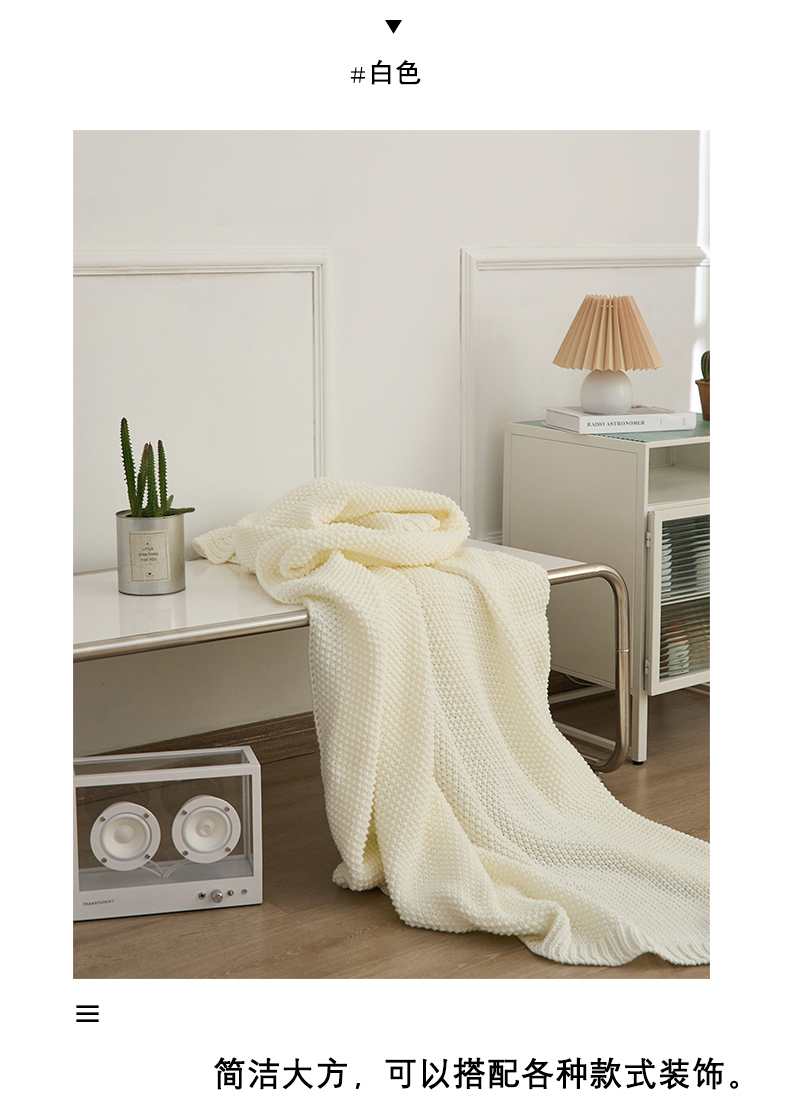 (总)暖绵绵家纺 2025新款柔软百搭简约家居针织毯-阿黛,阿黛-白色
