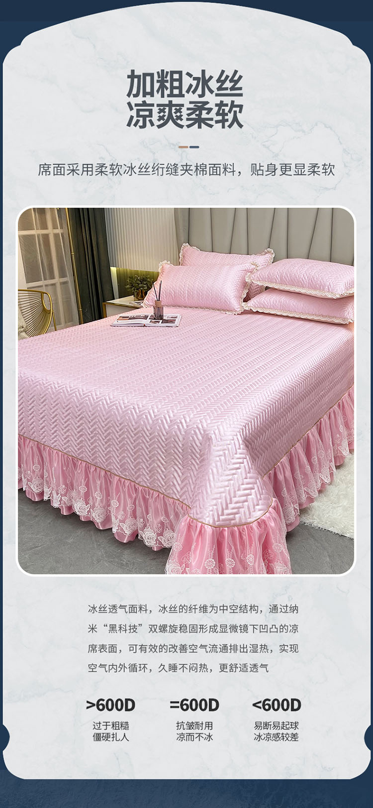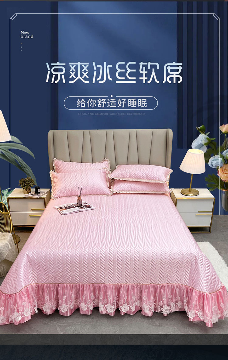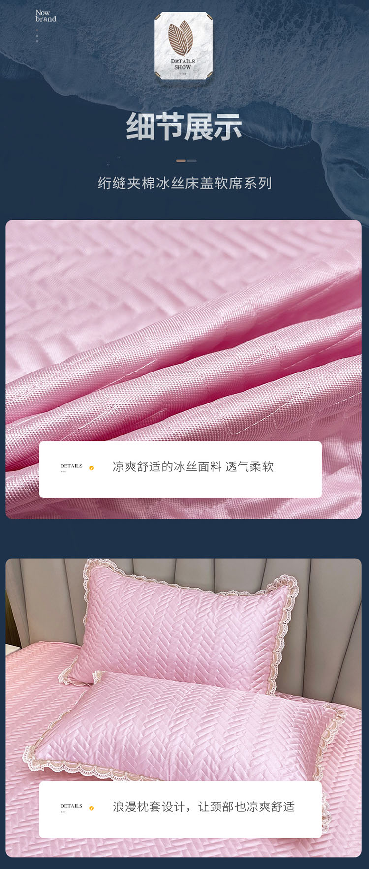 商品名称:恋尚 2023新款冰丝夹棉纯色床盖款软凉席三件套 伽罗玉