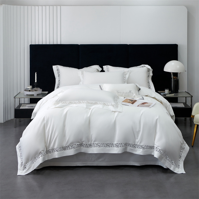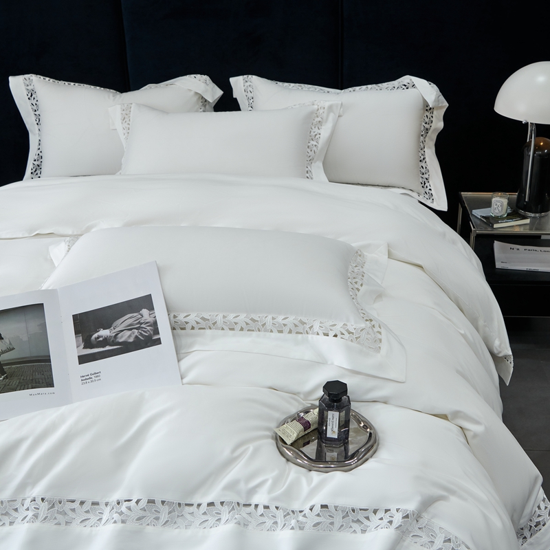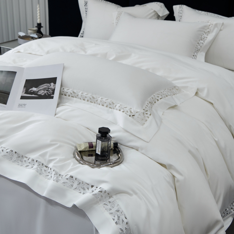 榻尚家居2023款纯棉镂空贡缎蕾丝款四件套(会员-20) 珍珠白