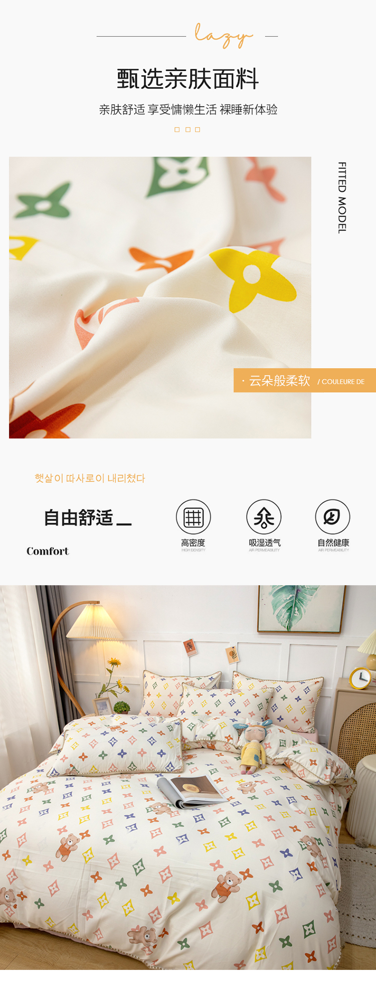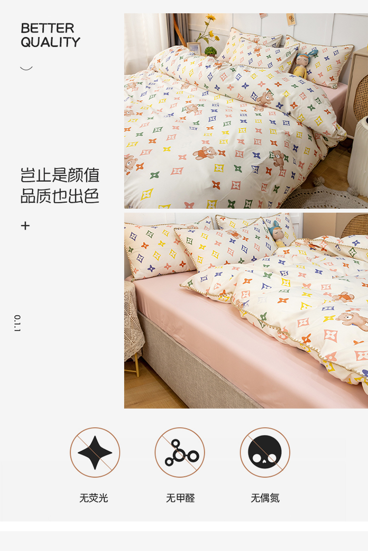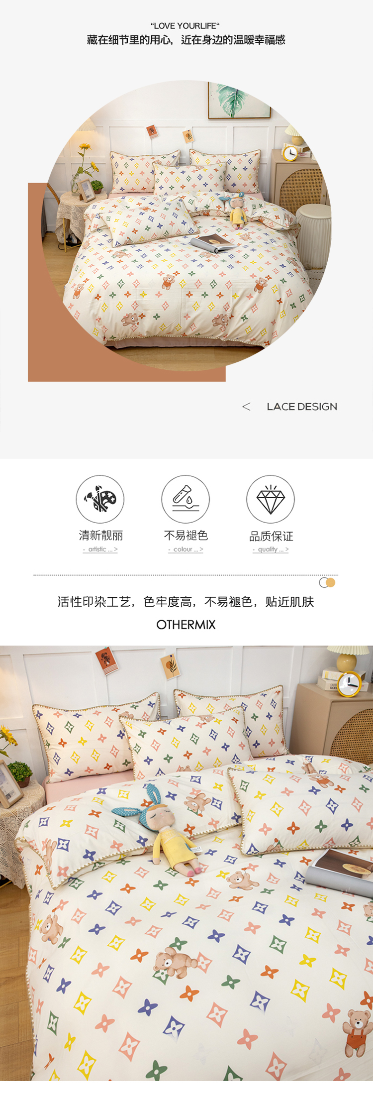 当前位置: 91家纺网 > 商品网购 > 床品套件 > 四件套 > 水洗棉四件套 > 乐居坊2023新款印花水洗双层纱贝壳绣四件套 潮牌小熊