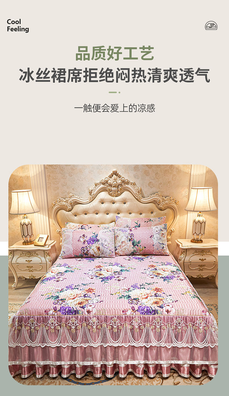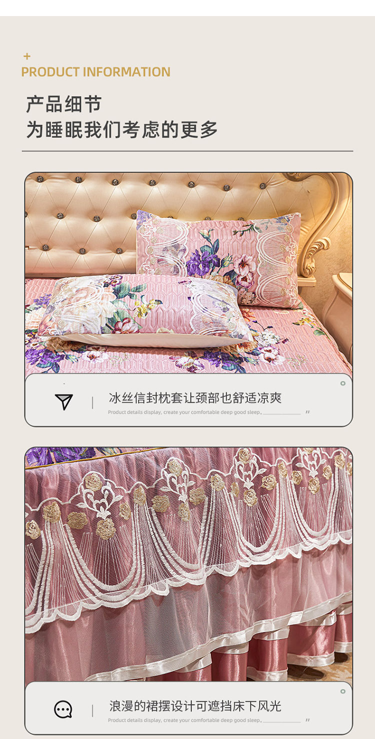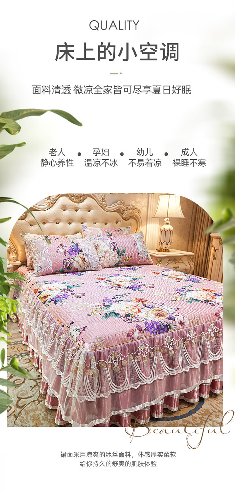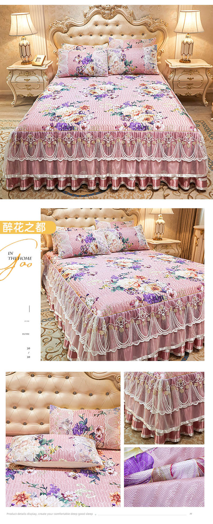 商品名称:恋尚 2024新款韩式夹棉床裙凉席三件套 醉花之都