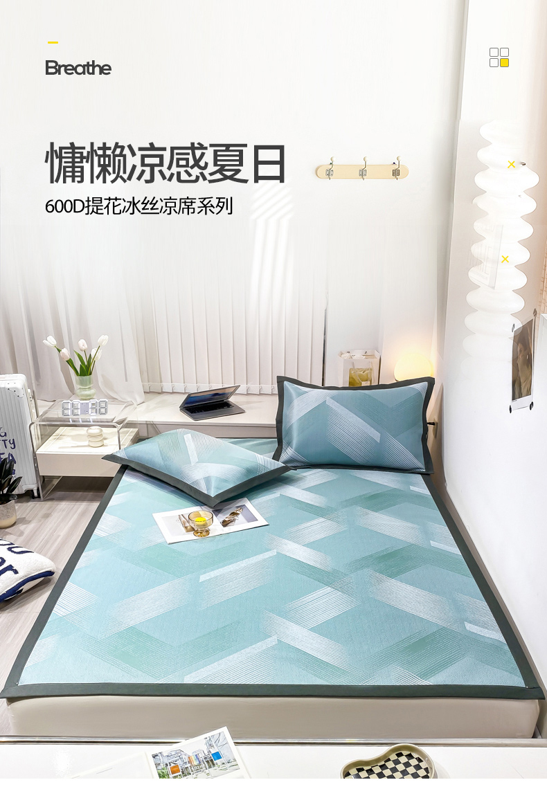 商品名称:柒月 2023新款600D提花冰丝席 绅士-绿